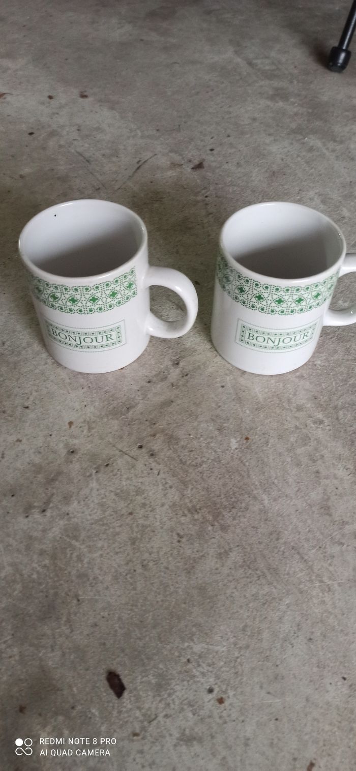 Vends lot de 2 mugs imprimes bonjour