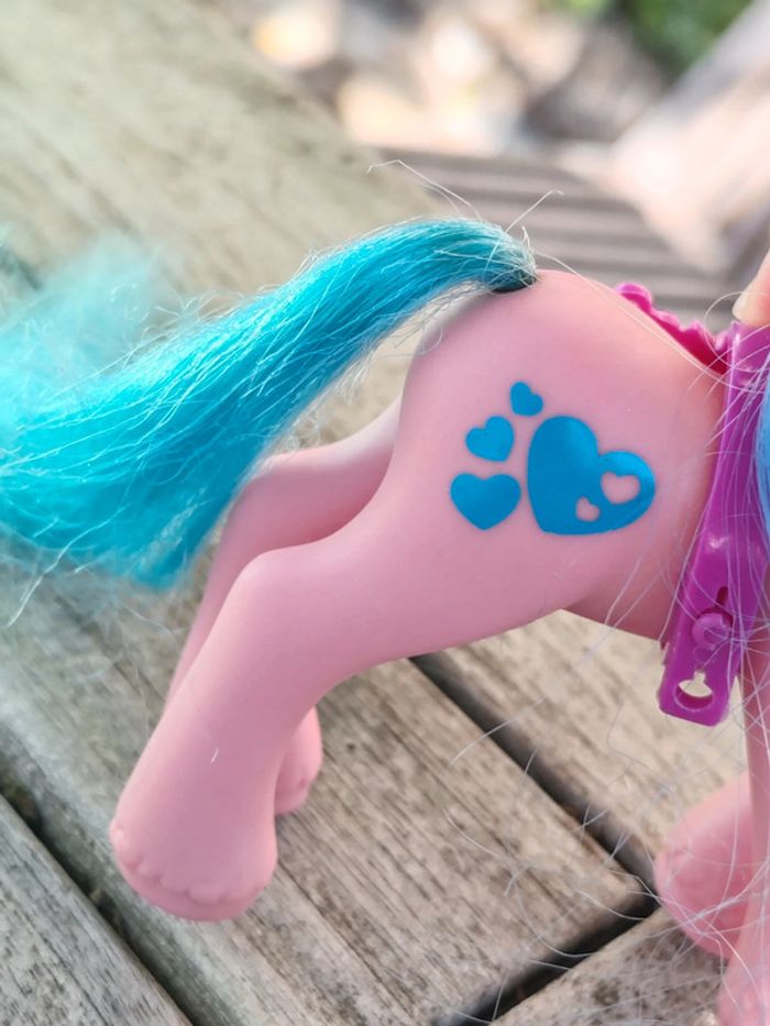 Poney g2 En très bon état général, voir photos Vintage Symbole : coeurs Couleurs : rose et bleu Il lui manque un strass dans l'oeil ➡️ #ursullabuffaypetitponey #ursullabuffayfigurines