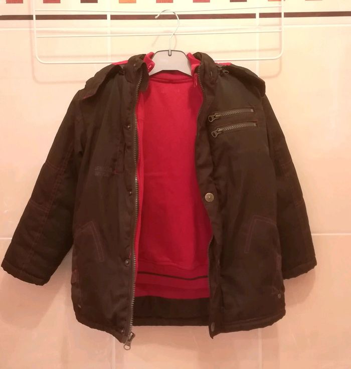 Vends manteau 2 en 1 : manteau chaud avec gilet intérieur amovible pouvant être porté seul Taille 5 ans #vêtementsT5ansgarçonV92B Prix de vente : 25 € À récupérer à Boulogne-Billancourt ou Porte Maillot. Envoi possible.