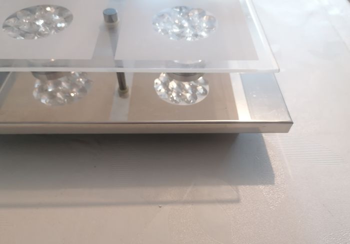 Cause déménagement, Lustre Led en verre et inox effet miroir. 25/25cm. En très très bon état général. 30€