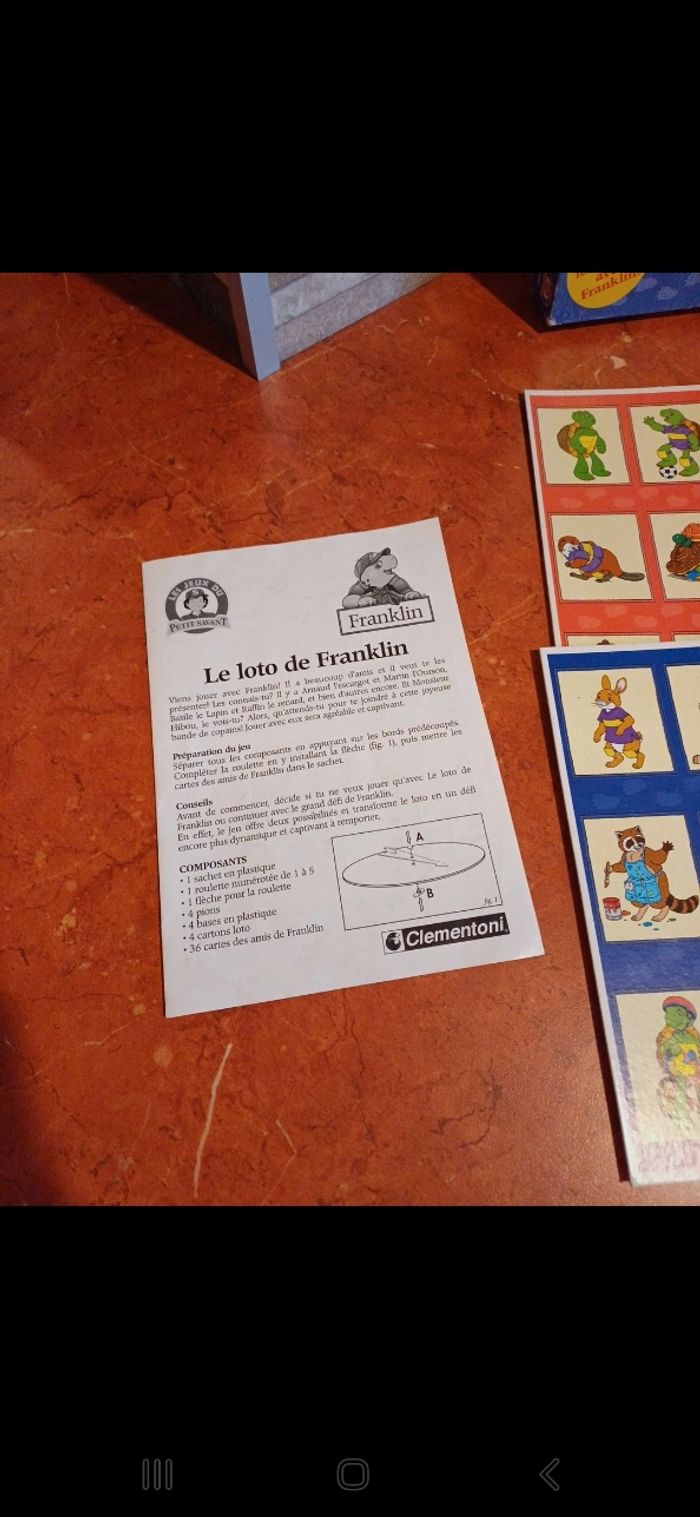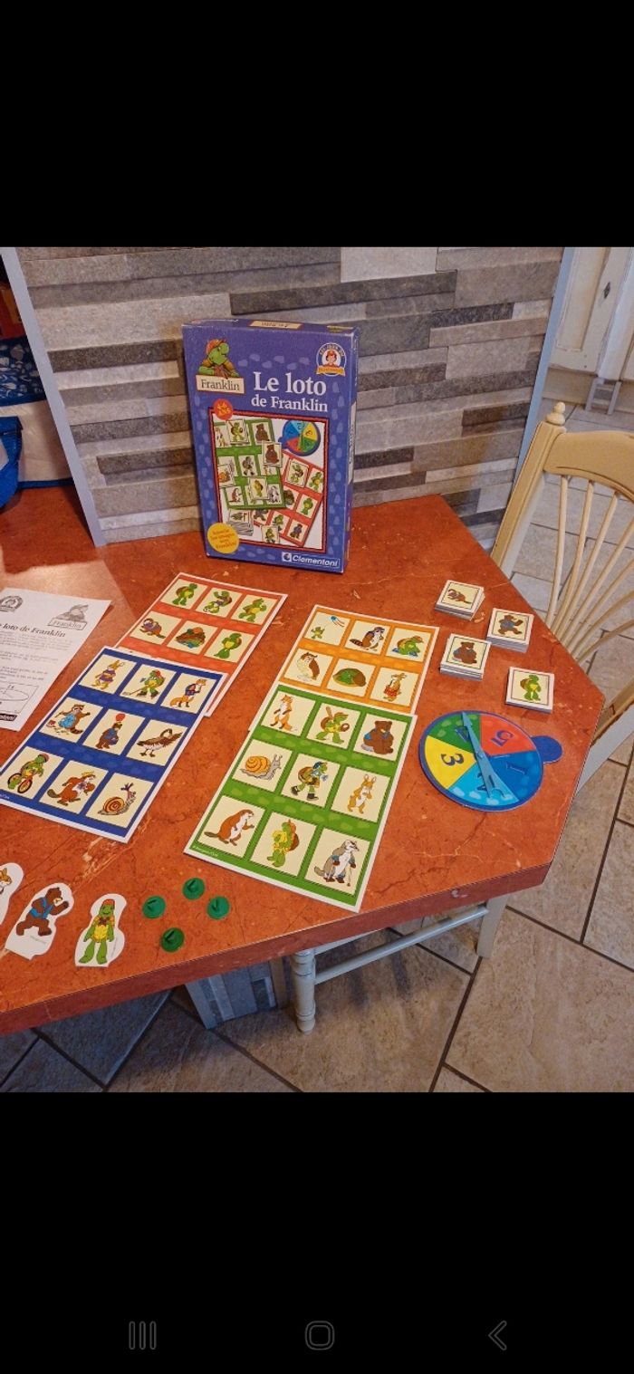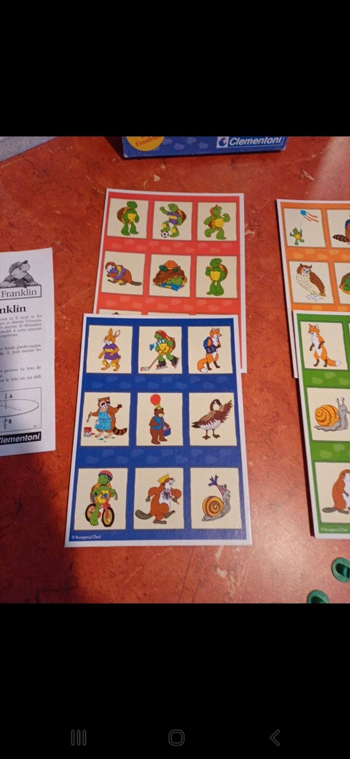 Deux jeux en 1 . Le loto classique où l on doit associer les cartes aux images mais également un parcours pour conquérir le titre de nouvel ami de Franklin. Adapté aux plus de 4 ans Complet et en parfait état seule la boite est usée