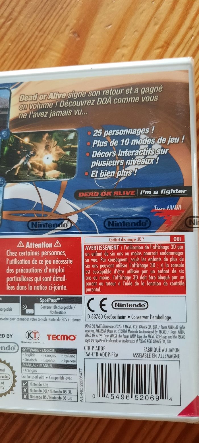Jeu neuf encore emballé "dead or alive dimensions" sur Nintendo 3DS.