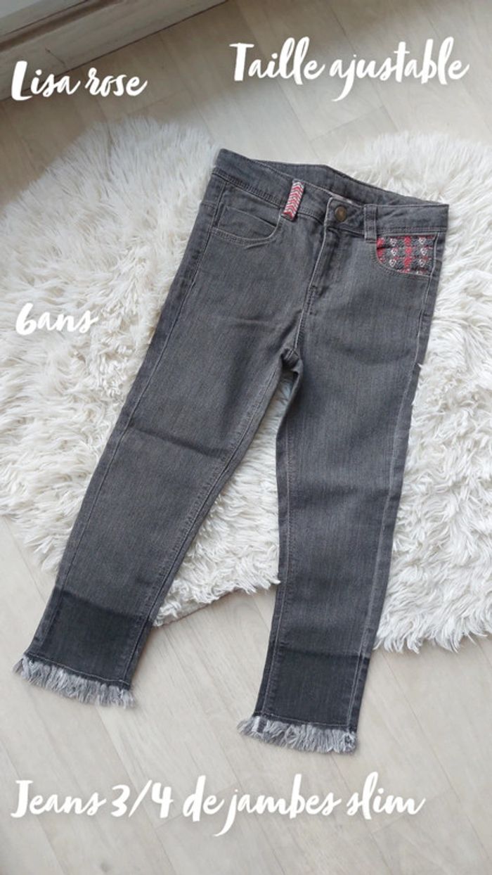 Jeans slim 3/4 de jambes gris 6 ans Lisa rose