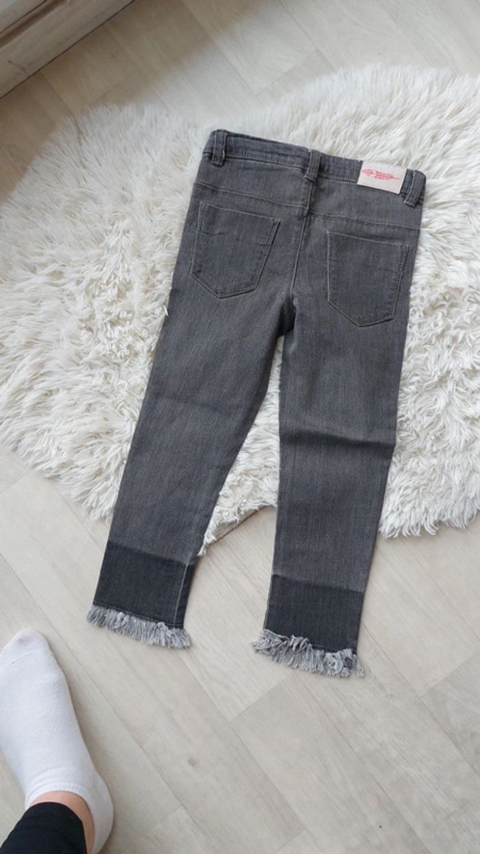 Jeans slim 3/4 de jambes Couleur gris, un peu plus foncé sur le bas et petites franges aux bas du pantalon Taille ajustable