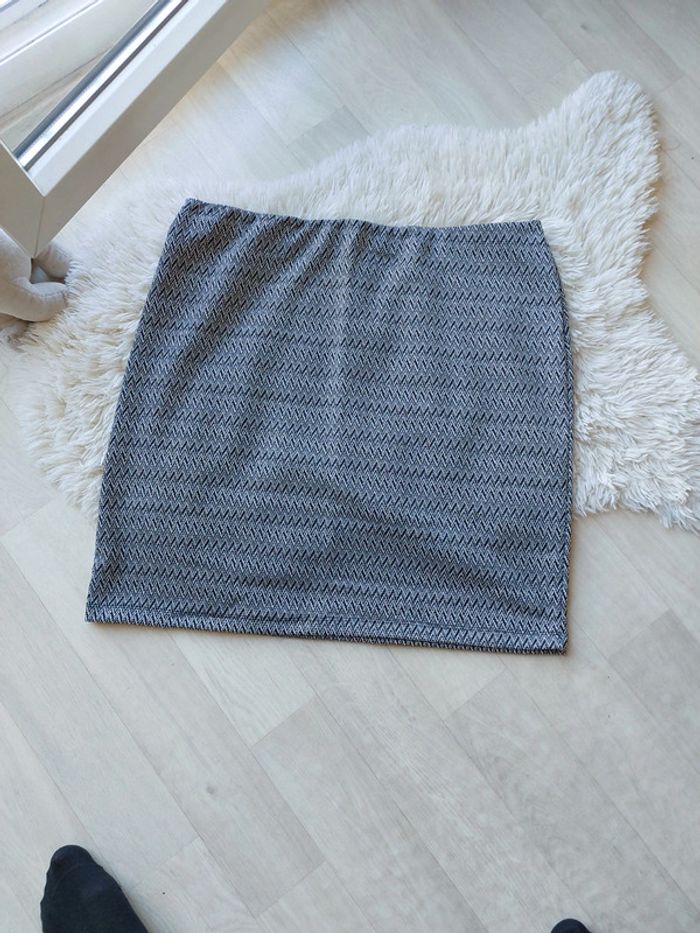 Jupe noir à motifs blanc et fil brillant Taille 48, étiquette taille coupée Jamais portée Taille elastiquée