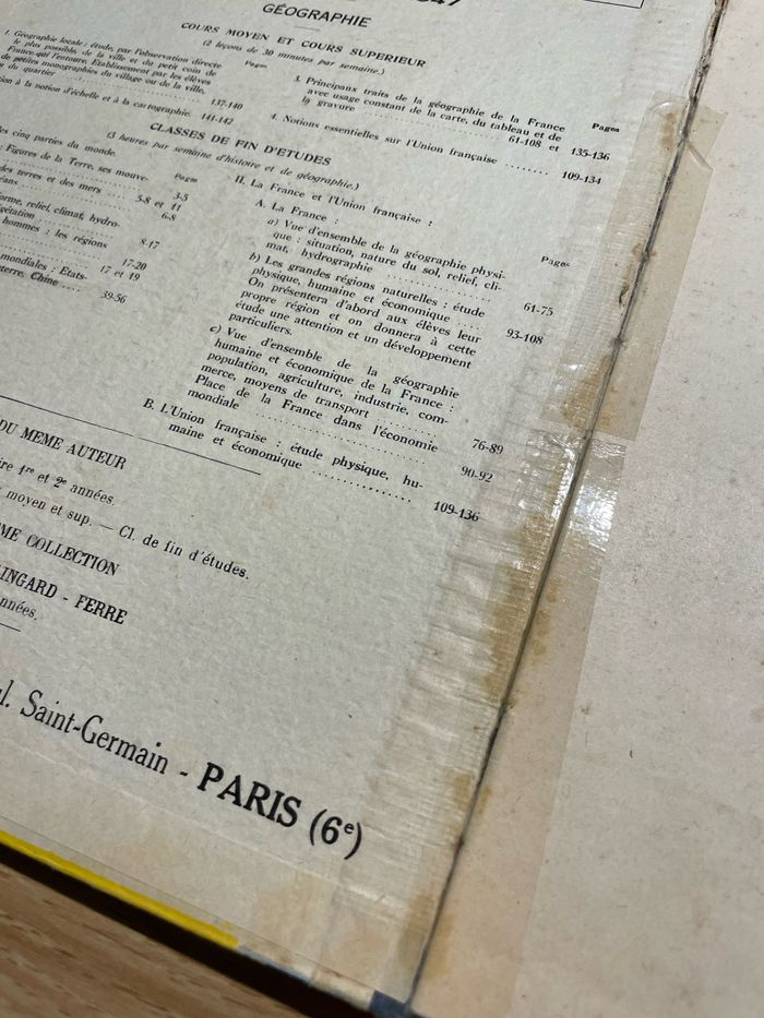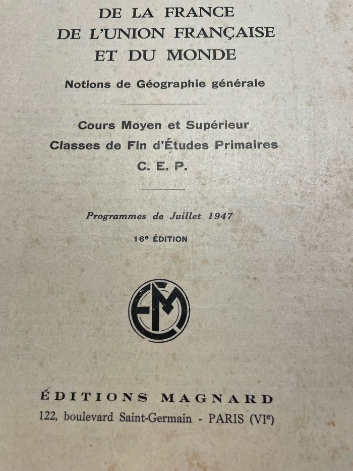 Manuel ancien Géographie de la France, de l’union française et du Monde C.E.P. 1947 Éditions Magnard Vintage