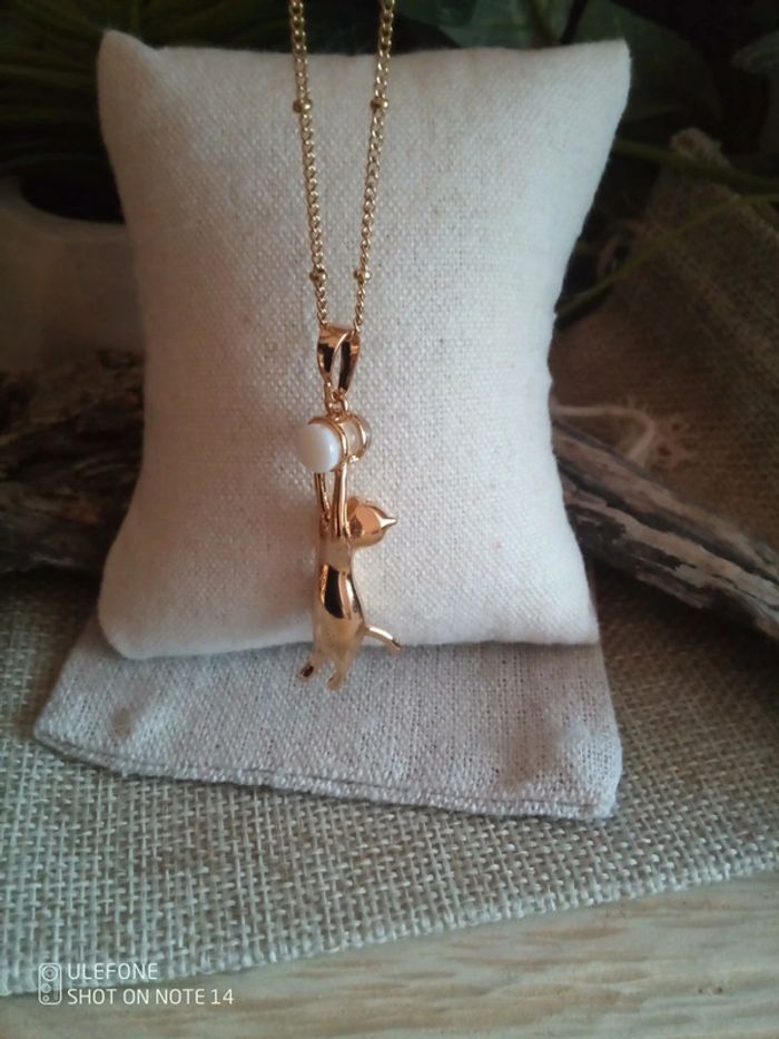 Collier petit chat suspendu doré - photo numéro 2