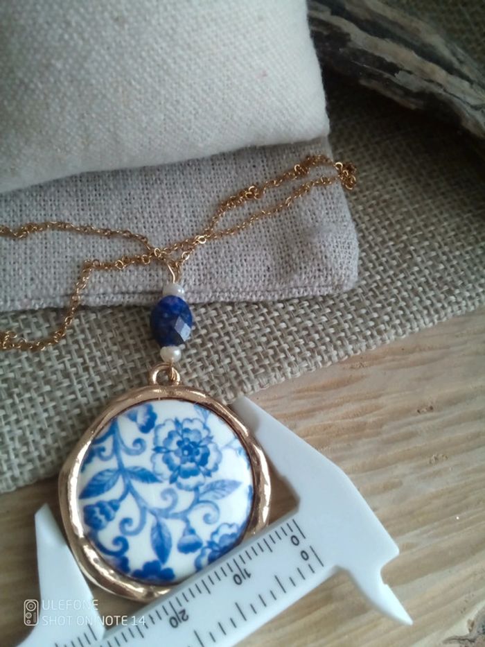 Collier lapis lazuli et médaillon faïence Vintage - photo numéro 2