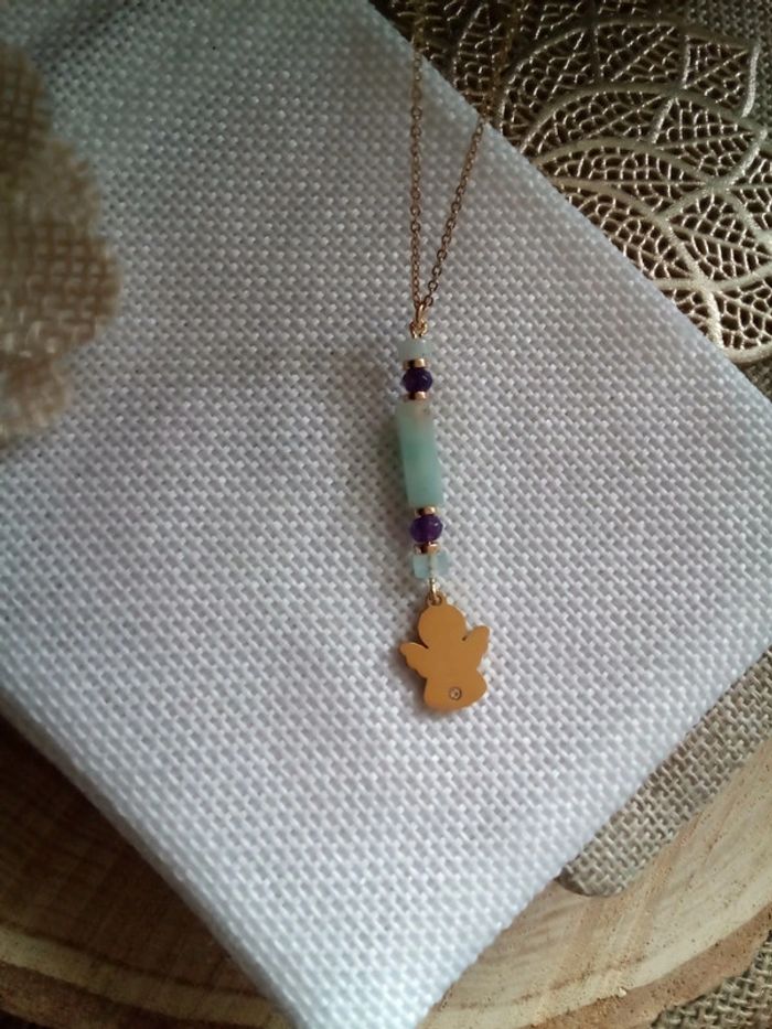 Collier ange et pierres semi précieuses - photo numéro 1