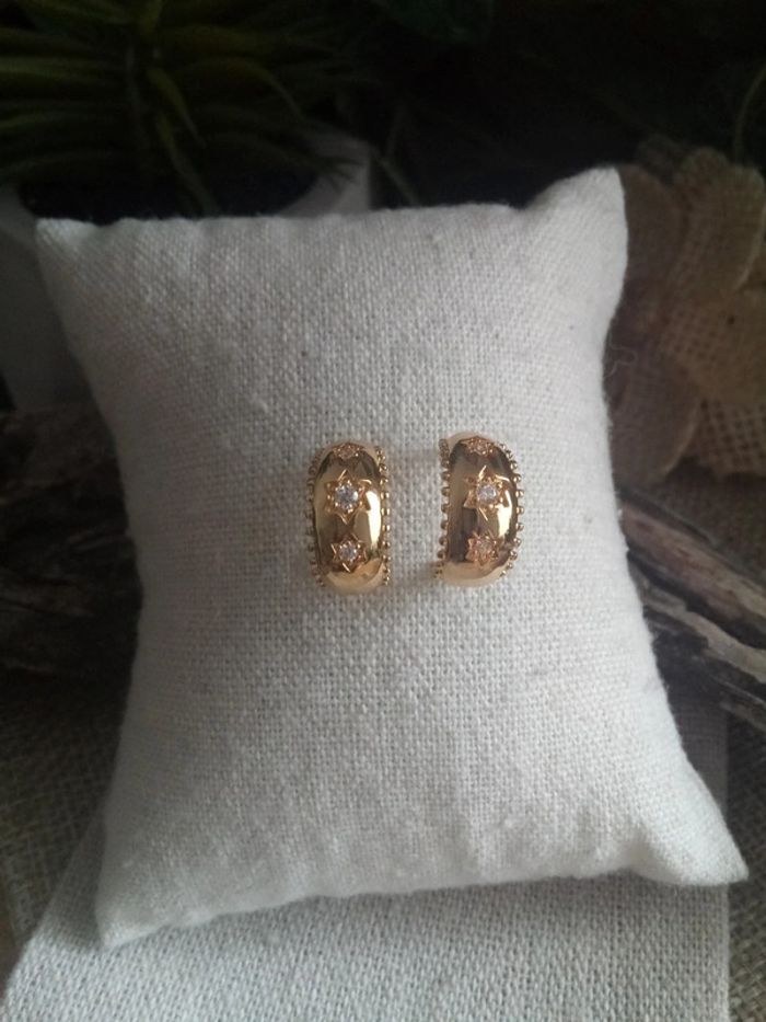 Boucles d'oreilles dorées avec zircons - photo numéro 1