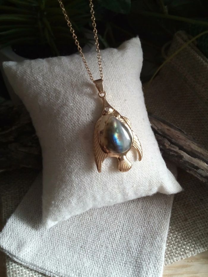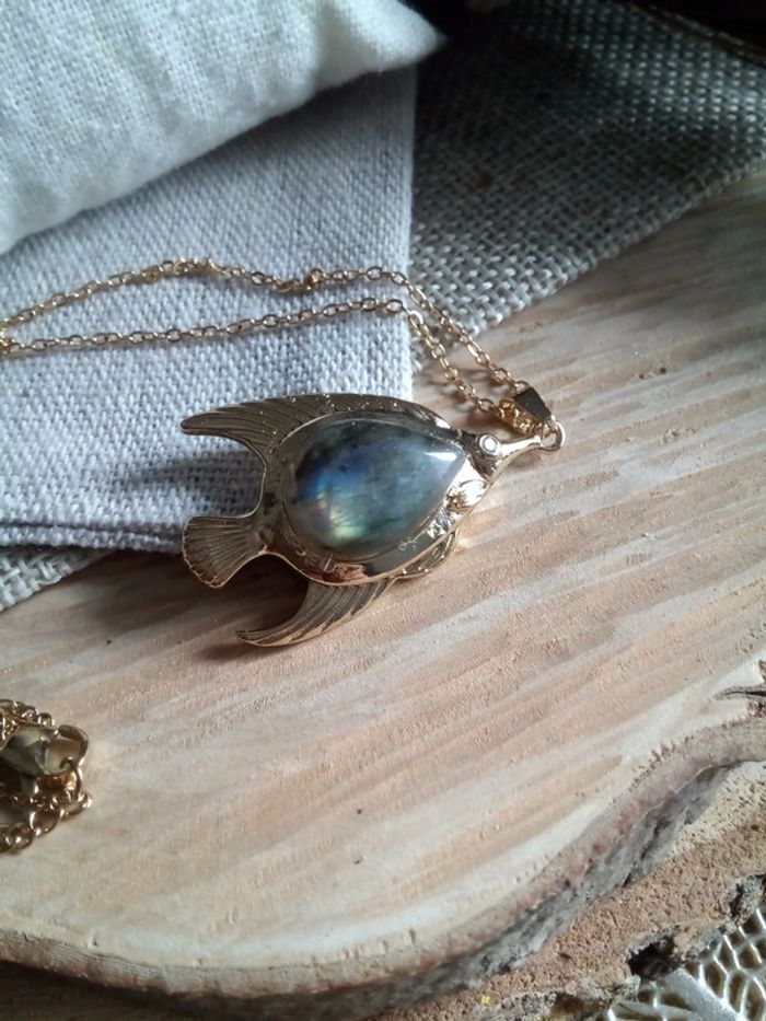 Collier pendentif poisson avec pierre de labradorite - photo numéro 4