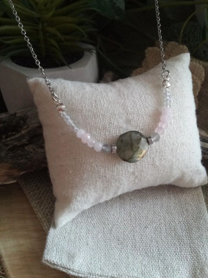 Collier sérénité pierres de labradorite et quartz rose - photo numéro 1
