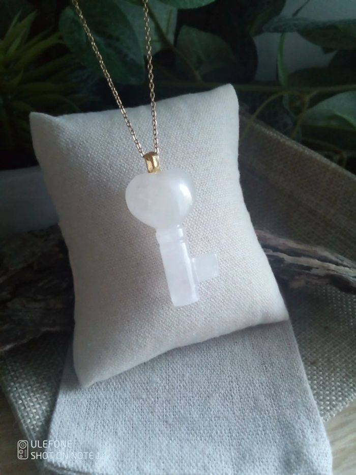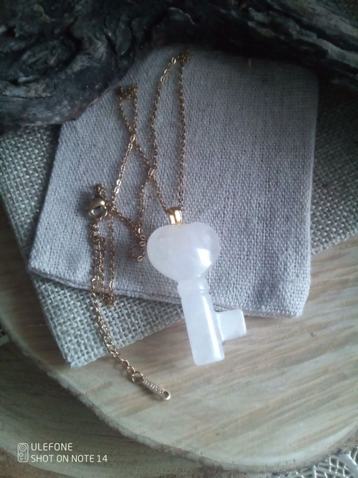 Collier clé du coeur en cristal de quartz naturel - photo numéro 1