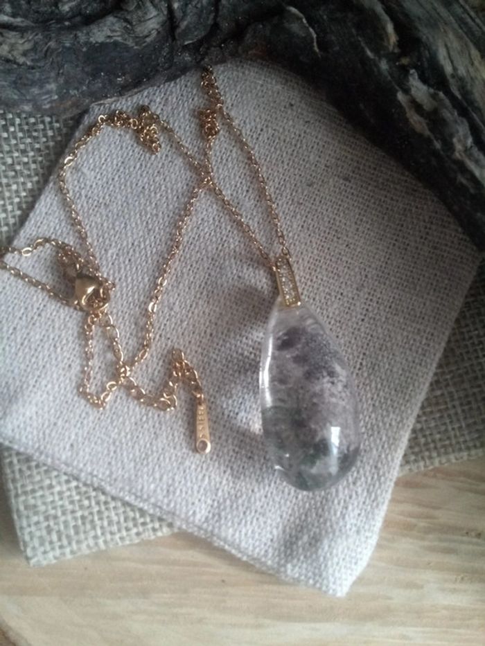 Collier pendentif pierre agate mousse goutte - photo numéro 2