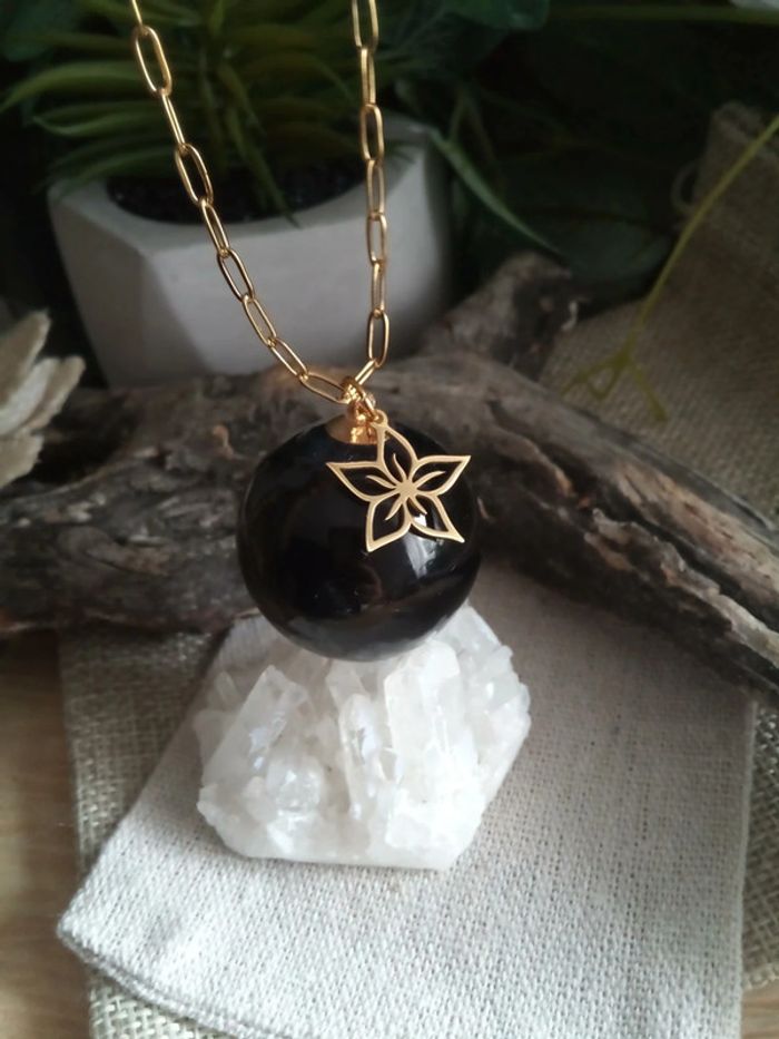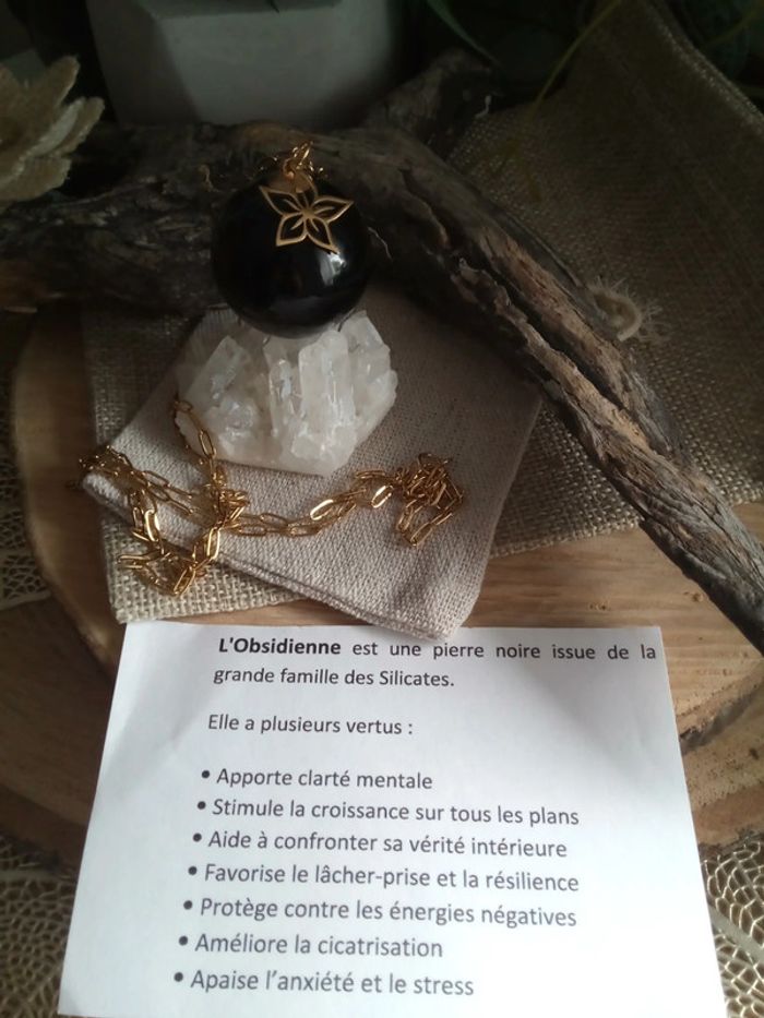 Collier pendentif de protection en obsidienne noire - photo numéro 1
