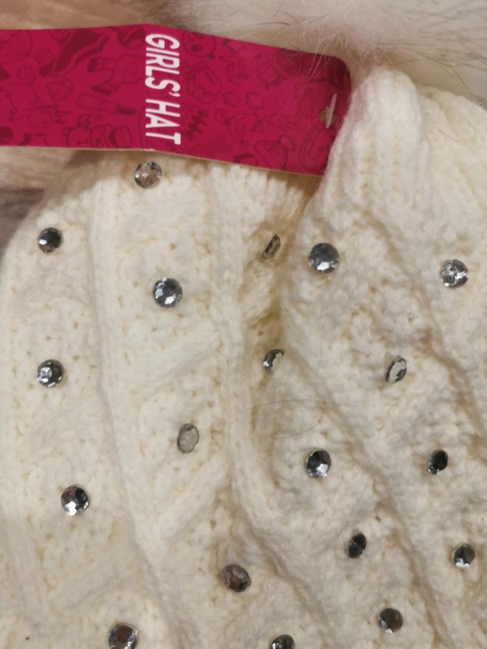Magnifique bonnet avec un gros pom-pom Des strass Tout doux a l'intérieur Taille 2/3 ans Neuf #manteaupopo