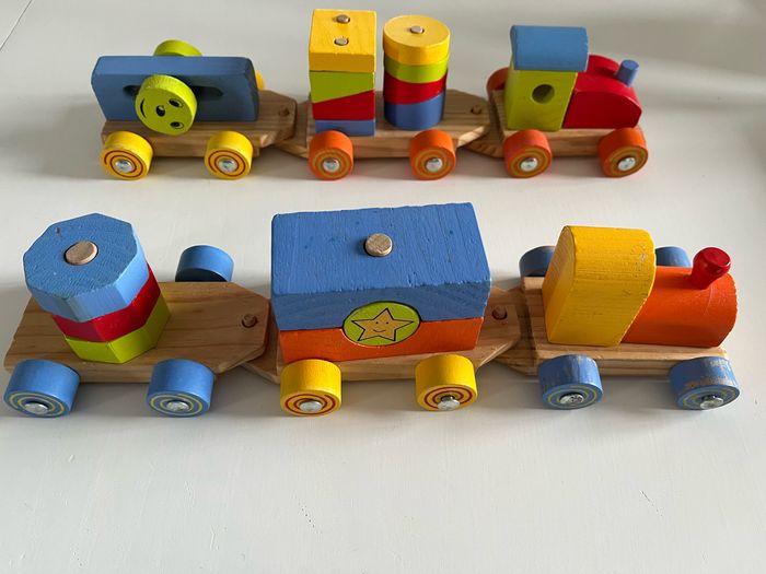 Lot de 2 trains à bois à assembler - photo numéro 3