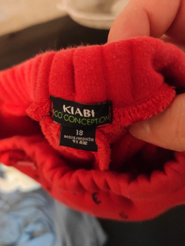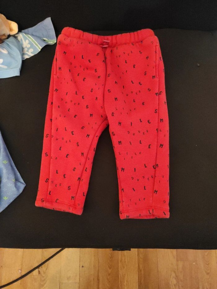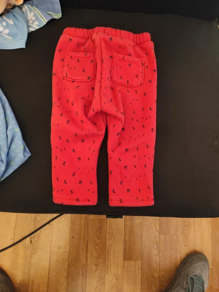 Jogging chaud et fourré couleur rouge avec lettres en noir, taille 18 mois (81cm) . Marque Kiabi , très bon état