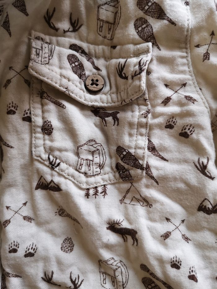 Chemise crème avec petits motifs marron. Taille 23mois.