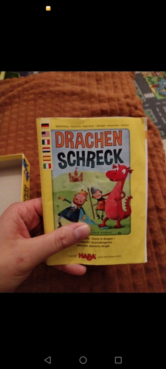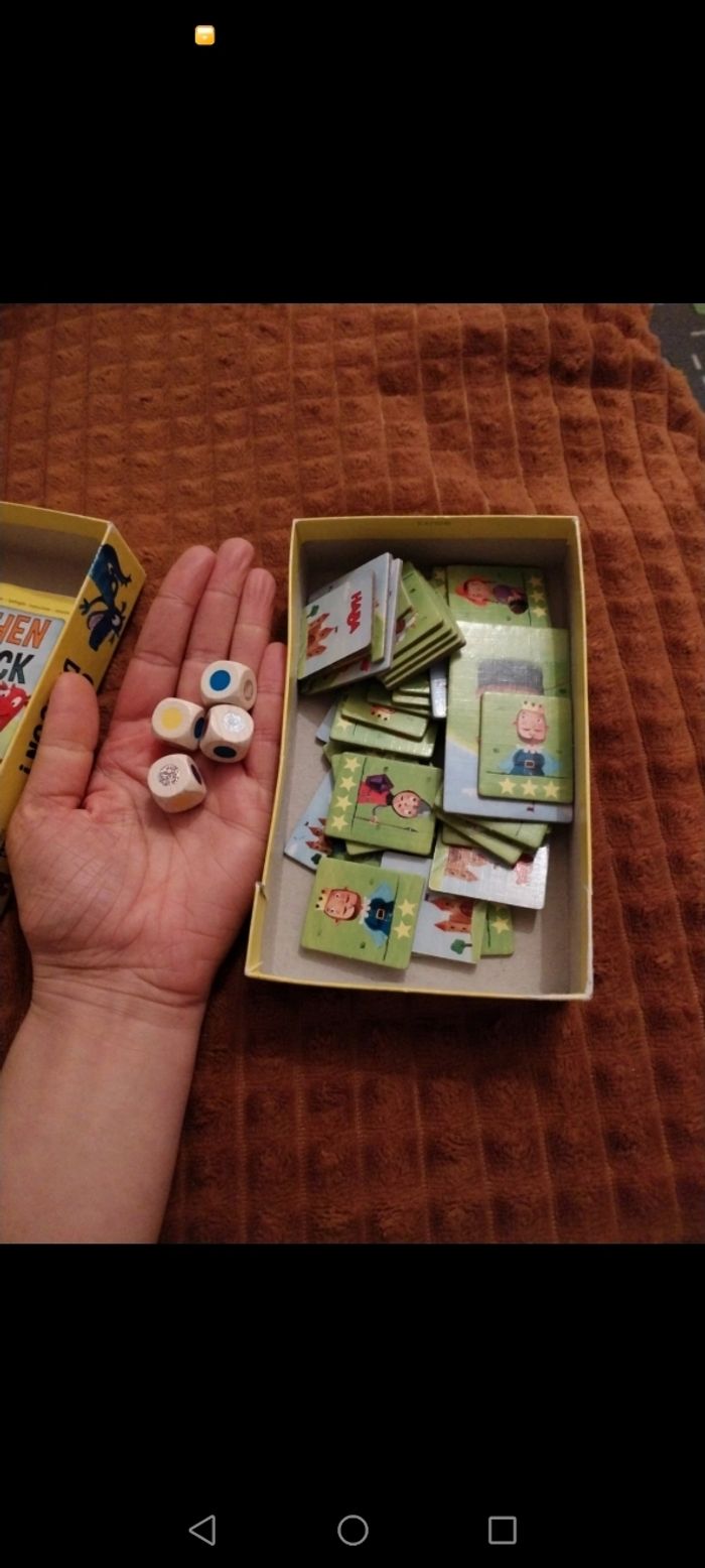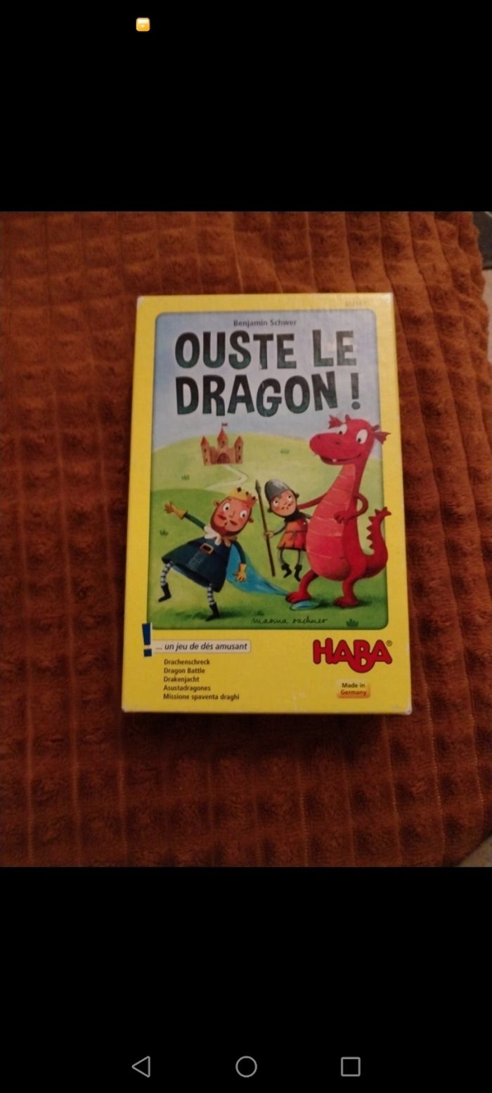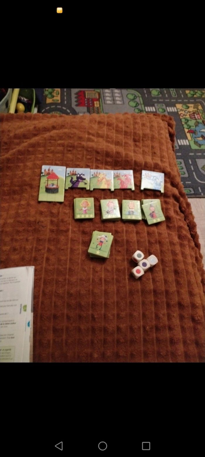 Jeu de société très amusant. La boîte contient une règle de jeu, 4 dés multicolores, 4 plaquettes dragon,1 grande plaquette fontaine,32 plaquettes habitants château, 8 plaquettes jongleur