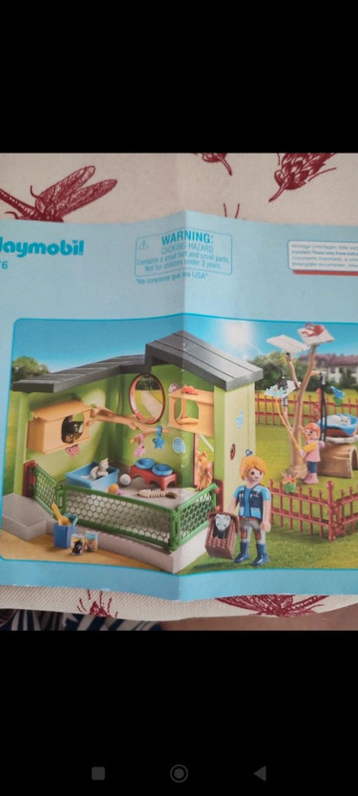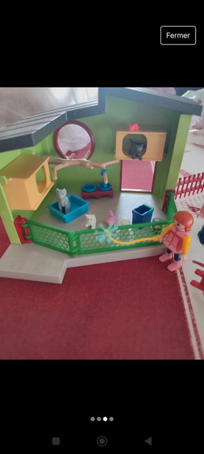 Playmobil n° 9276 la maison du chat avec notice Manque quelques petites pièces mais n'empêche en rien de s'amuser : 1 panier,1 pelle,1 panier,1 poisson,1 boite de conserve Pas de boîte d'origine