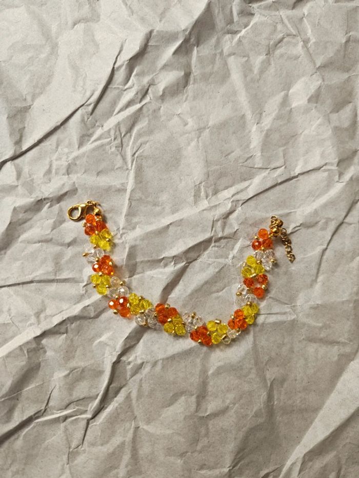 Bracelet fait main orange jaune blanc doré