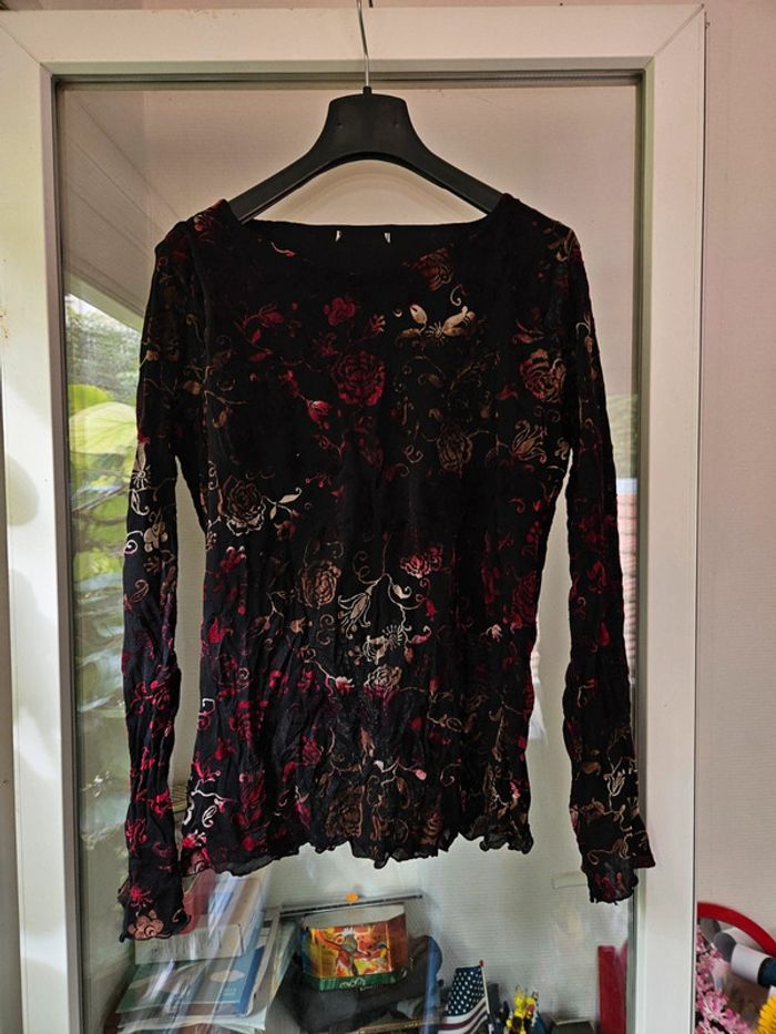 Haut noir à motifs taille 40 L - photo numéro 2