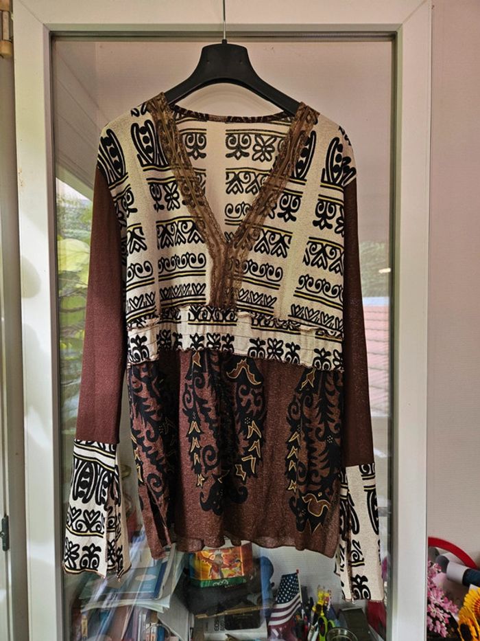 Haut marron à motif taille 42 vintage - photo numéro 1