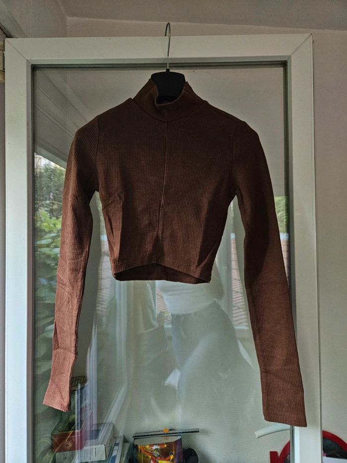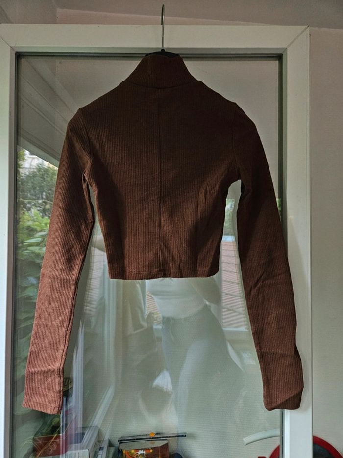 Top col roulé marron bershka taille 34 xs - photo numéro 2