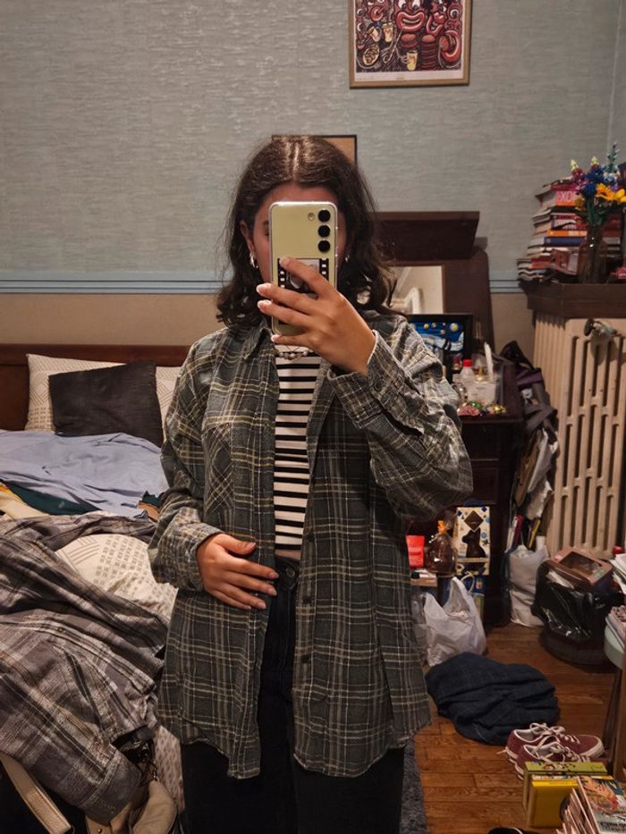 Chemise à carreaux vintage vert taille 38