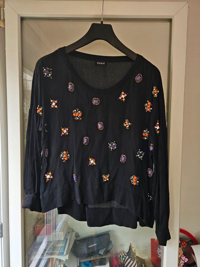 Haut noir avec perles kookai taille 40 - photo numéro 1
