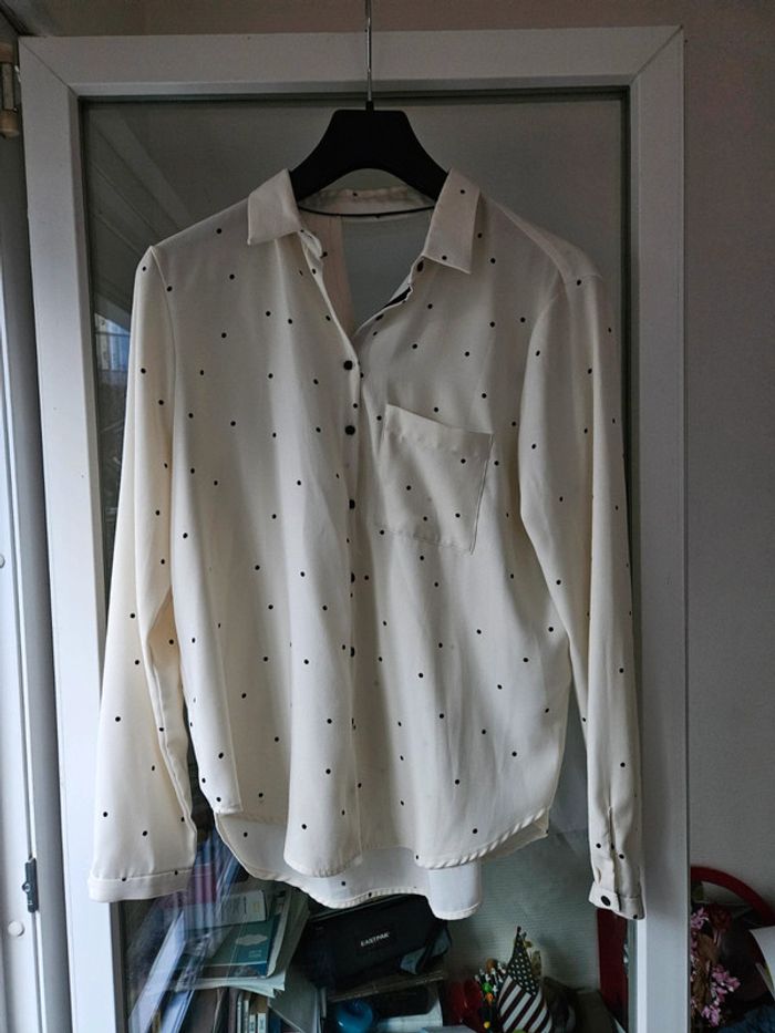 Chemise blanche à pois noirs vintage taille 40 - photo numéro 1