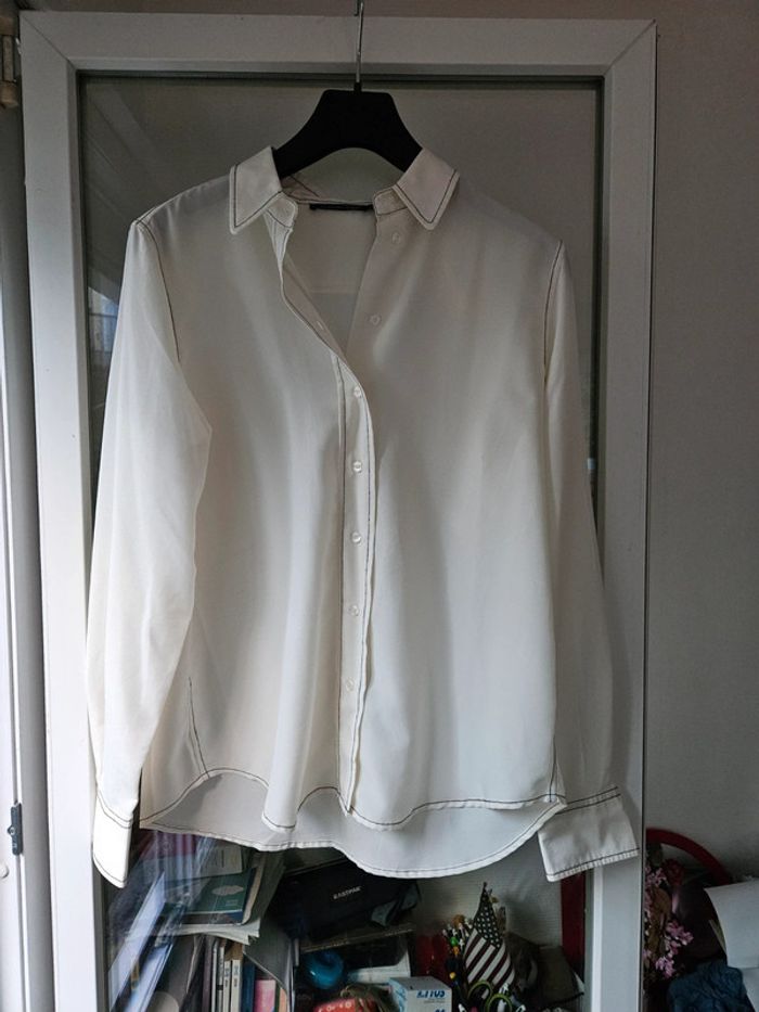 Chemise vintage blanche coutures noires taille 42 - photo numéro 1