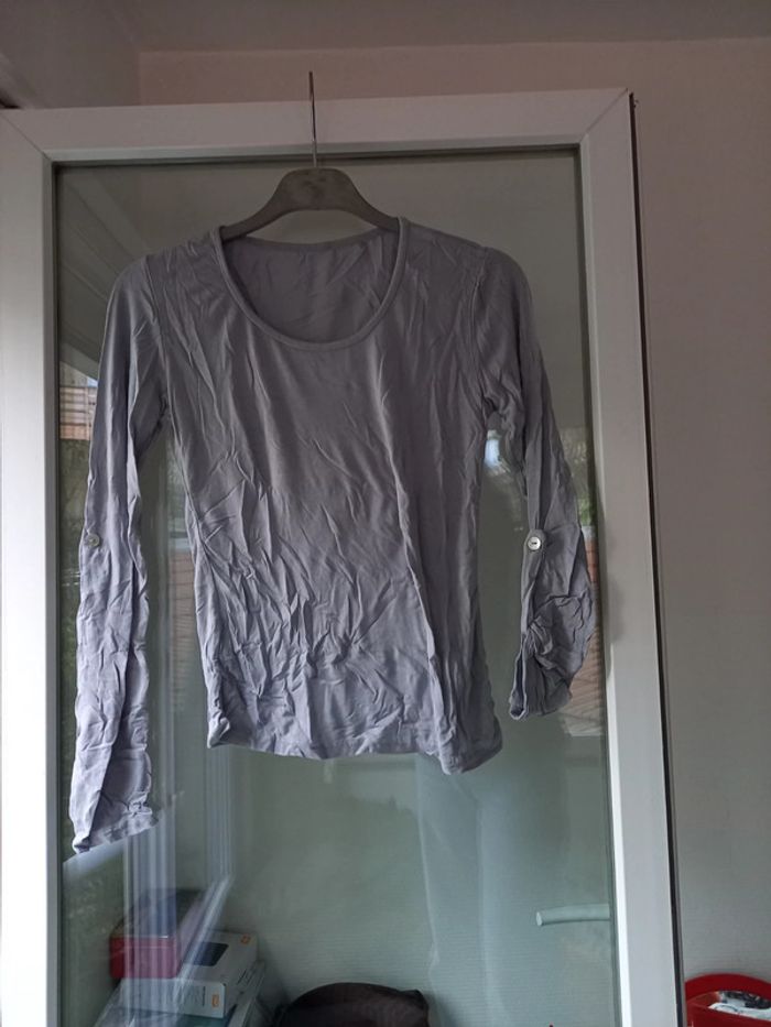 Tshirt manches longues gris vintage - photo numéro 1