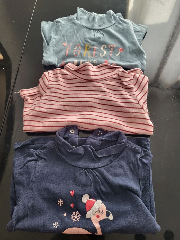 Lot comprenant 1 col roule raye rouge 1 bleu impression flamant rose 1 bleu impression forest love