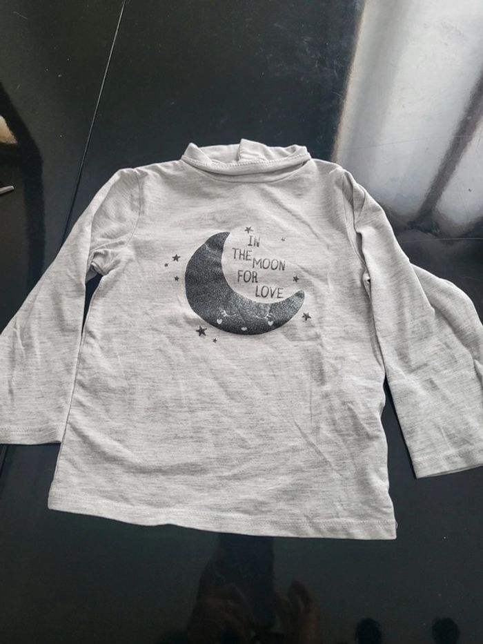 Lot comprenant 1 sous pull rose 1 sous pull gris impression lune 1 sous pull blanc pois or
