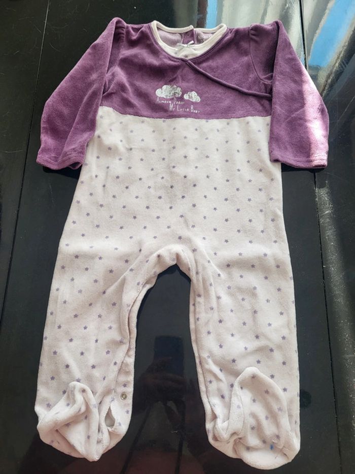 Pyjama tape à l oeil violine et blanc avec petite étoile violette 2 ans