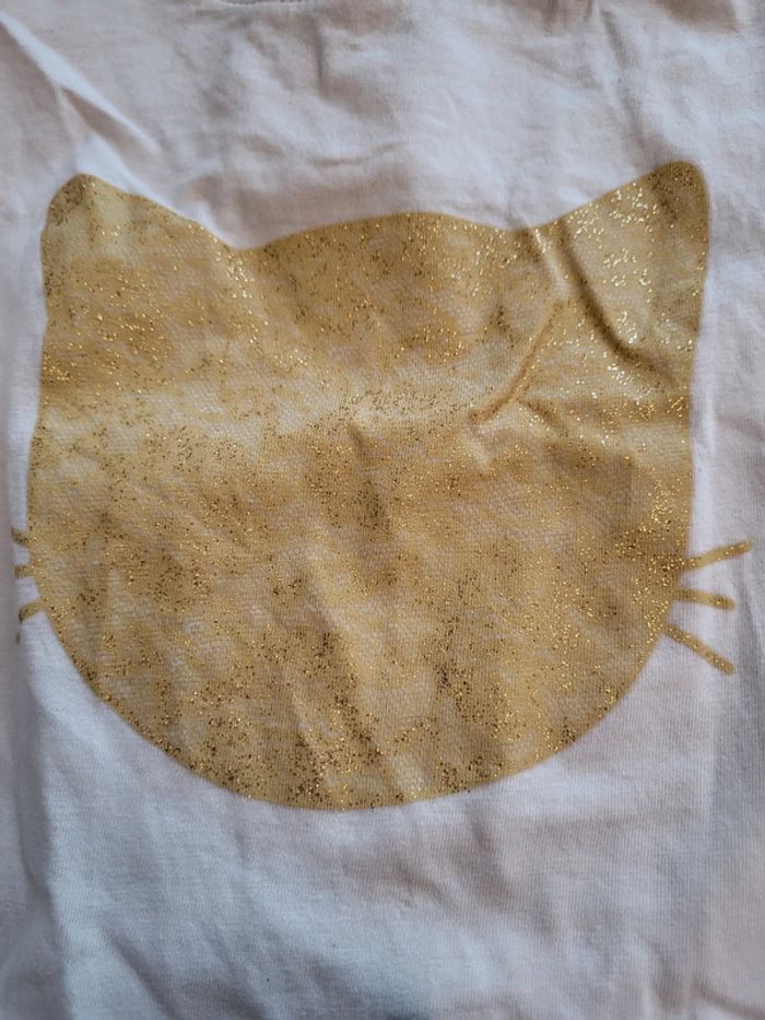 Haut ecru manche longues avec applique chat or pailleté