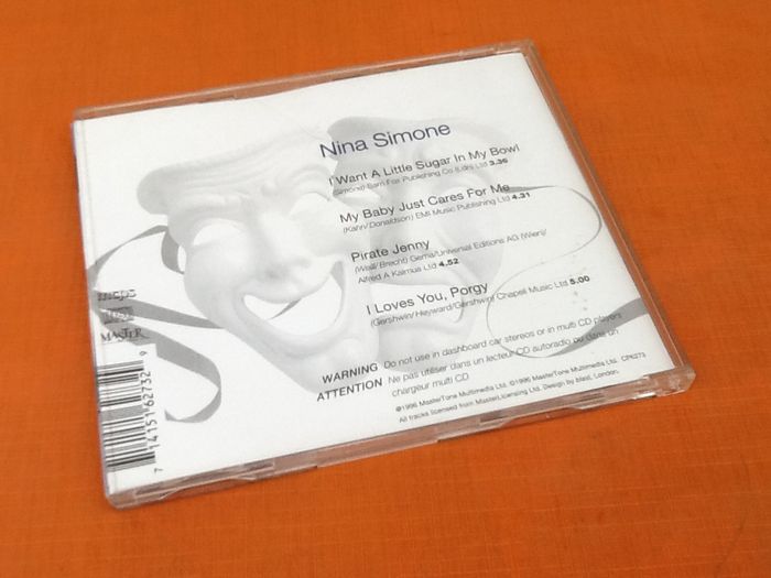 CD Nina Simone I Want A Little Sugar In My Bowl (1996) MasterTone CP6273 Poids : 63grs 1 Je veux un peu de sucre dans mon bol Écrit par – Simone * 3:36 2 Mon bébé prend juste soin de moi Écrit par – Kahn * , Donaldson * 4:31 3 Pirate Jenny Écrit par – Brecht * , Weill * 4:52 4 Je t'aime, Porgy Écrit par – Heyward * , Gershwin * , Gershwin * 5:00