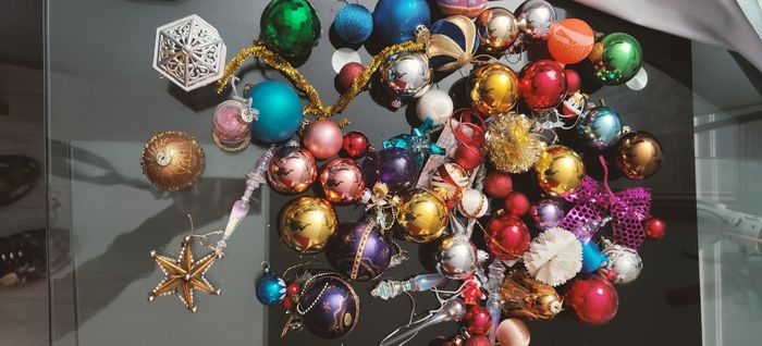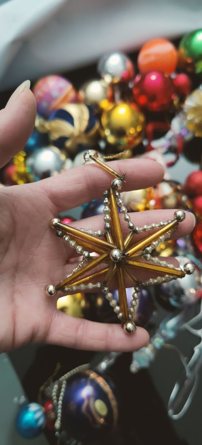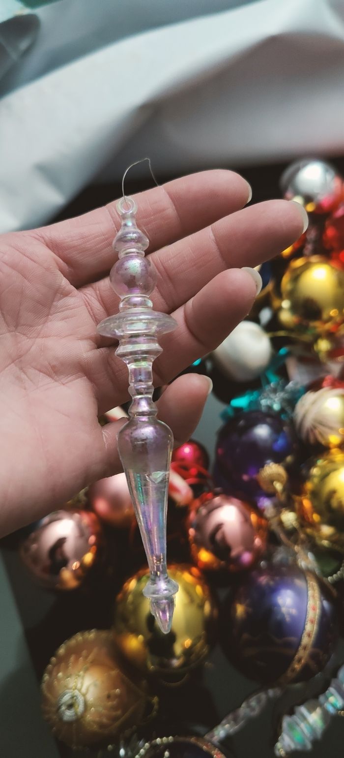 Lot multiples pièces, sur certaines boules manque les attaches Sapin, peut être remplacé par des fils tissu ou métal, très bon état général