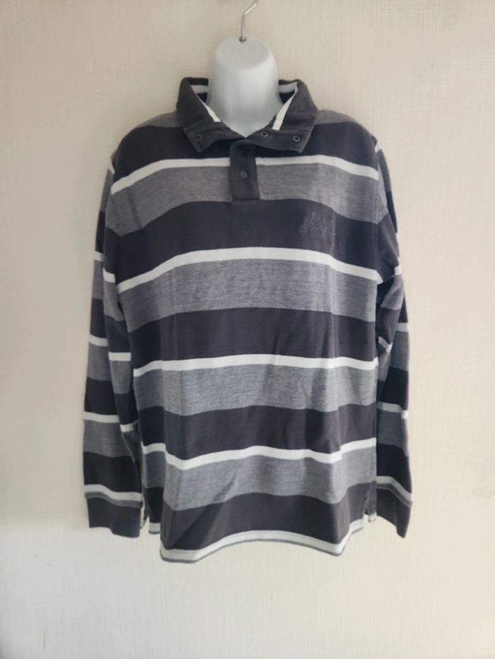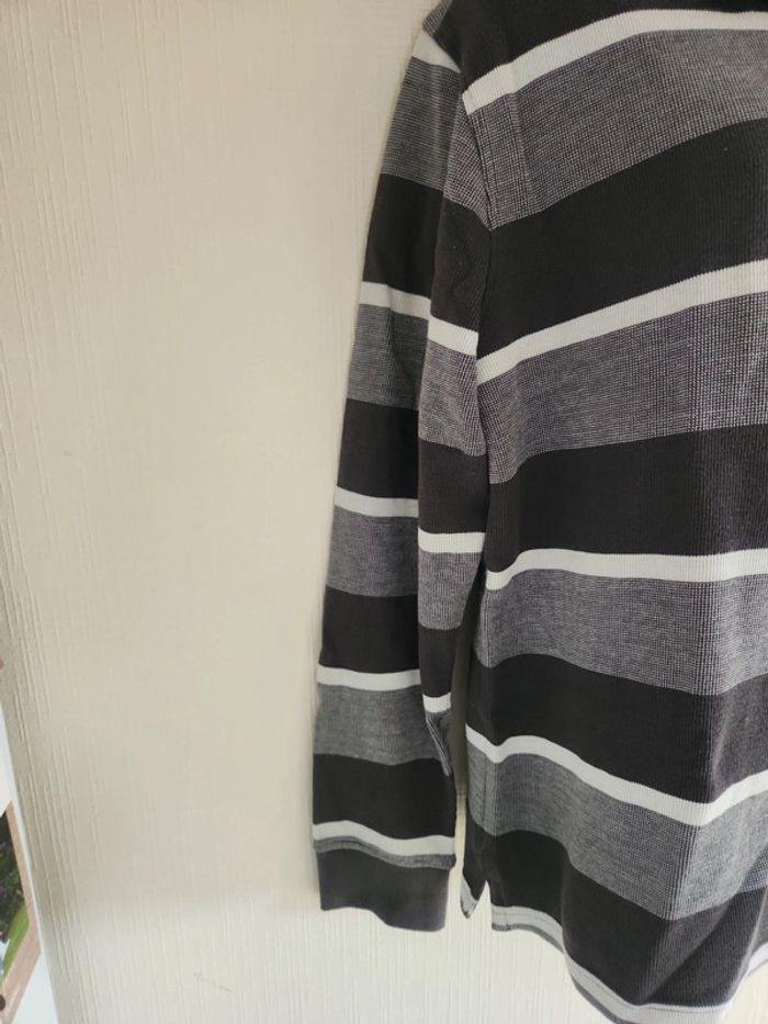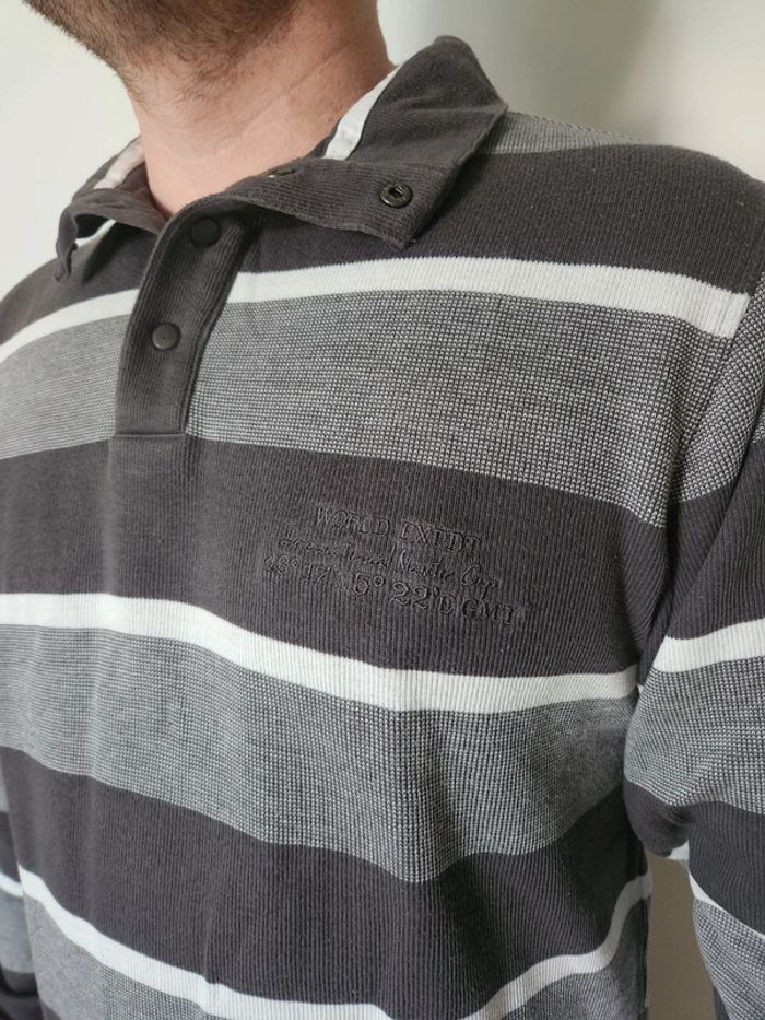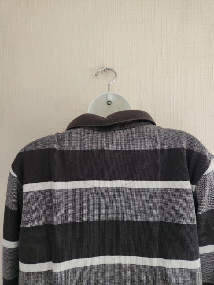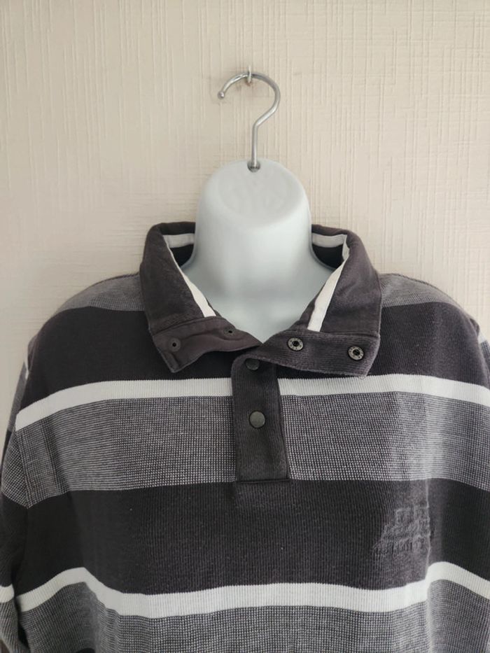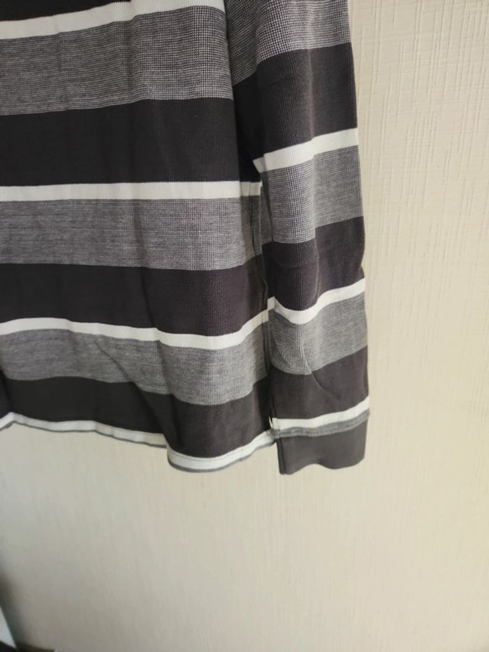 Joli pull à rayures horizontales grises et blanches, col montant qui se ferme avec des pressions, de la marque Armand Thiery en taille L Autres articles homme visibles ici: #pseudodohomme Envoi rapide et soigné via diverses plateformes #pseudodohomme #armandthiery #armandthieryl #pullhomme #colcheminee #colmontant #pressions #rayures #gris #blanc