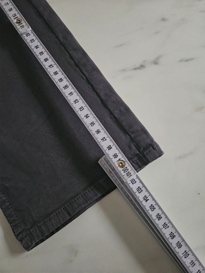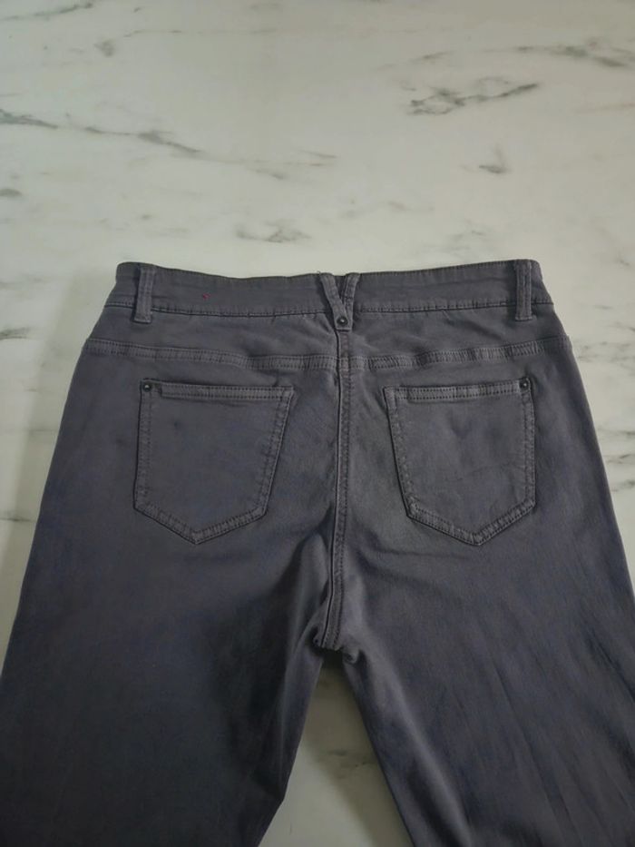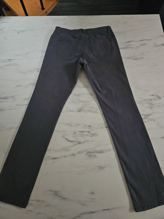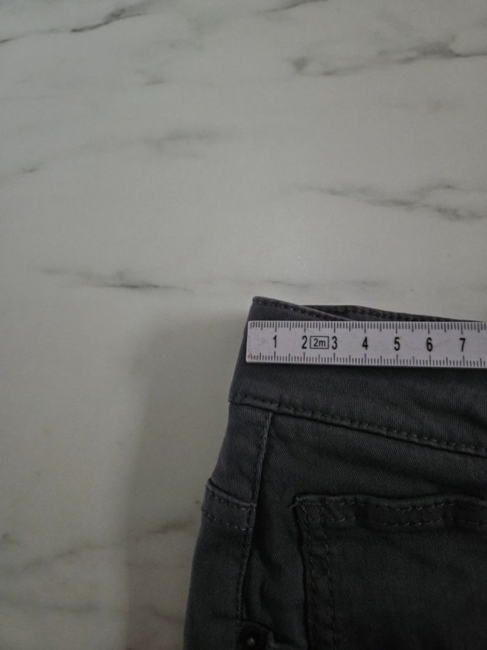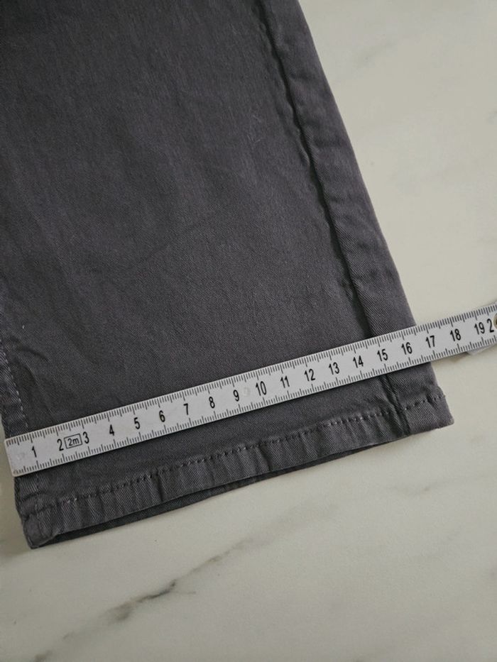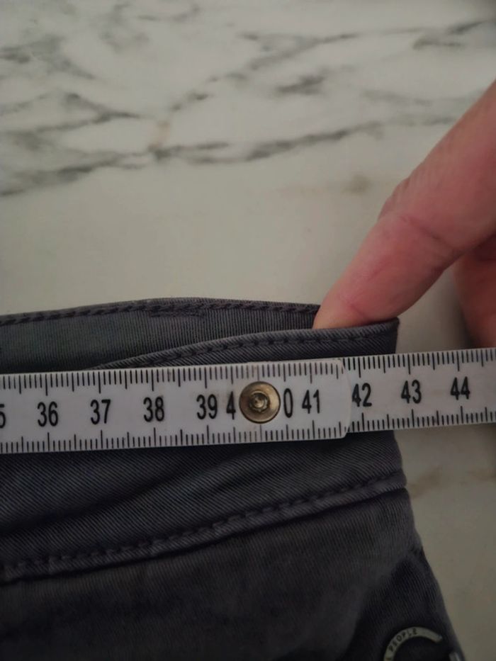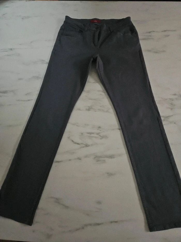Pantalon gris en stretch. Peu porté il est en très bon état. Pas d'étiquette de taille mais les dimensions se trouvent sur les photos