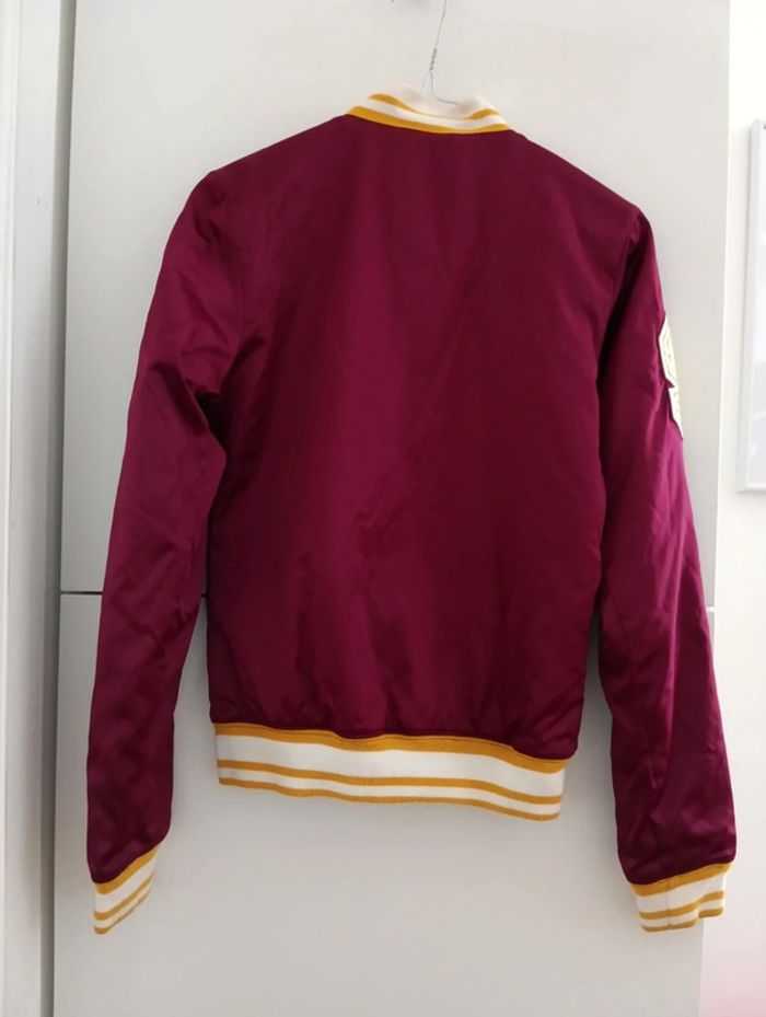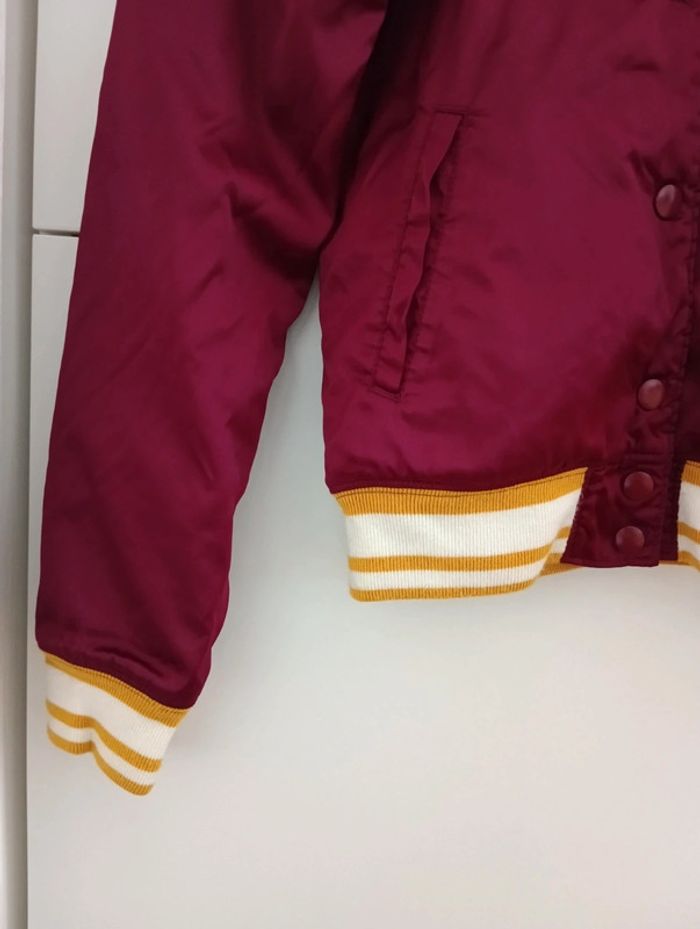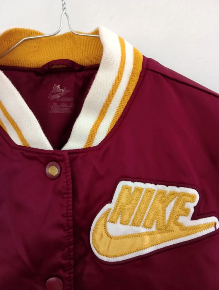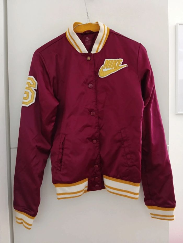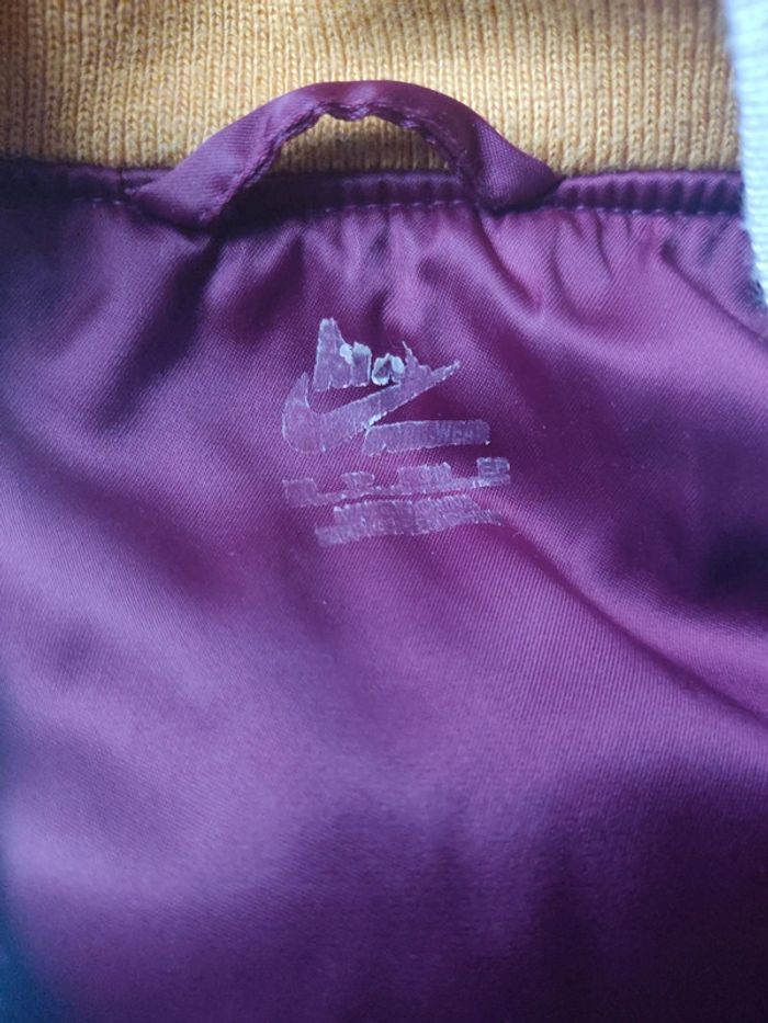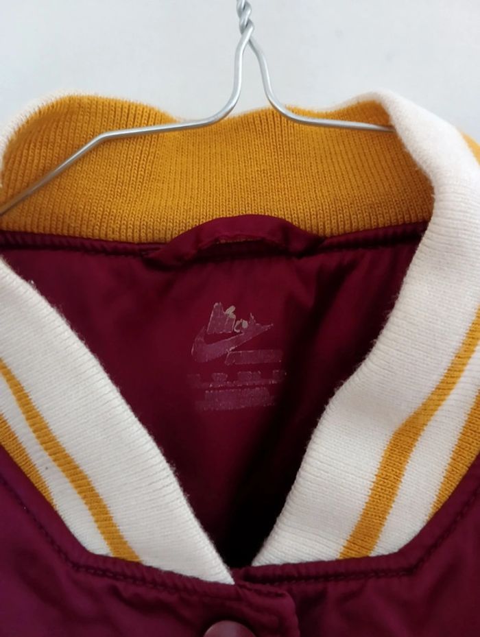 Veste Teddy Nike taille XS Varsity jacket style veste université américaine. Bordeaux et jaune . Bombers, La peinture de la dernière pression s'écaille , L'étiquette thermocollée s'efface. Taille XS Mesures Épaules 38cm Aisselles 42cm Longueur 57cm