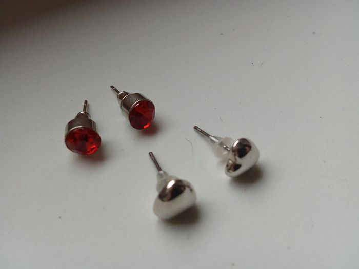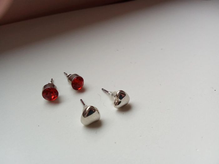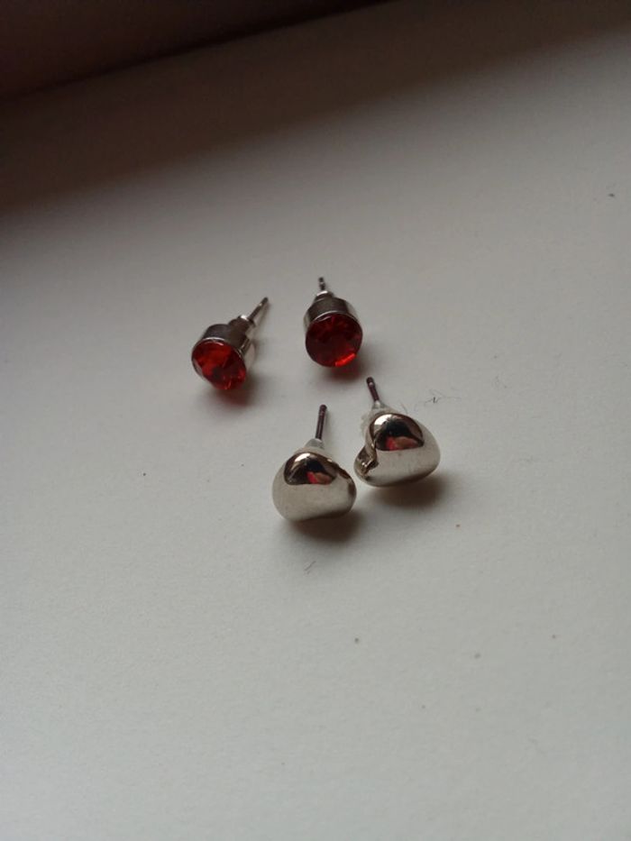 2 paires boucles d'oreilles neuves - coeur + ronds Rouges Neuves #coeur #heart #corazon #neuf #new #nuevo #boucles #pendientes #aretes #piercings #earrings #regalo #gift #cadeau #fille #femme #diamant #brillant #bijou #fetesdefinannee #dafnezfemme #dafnezado #dafnezbijou