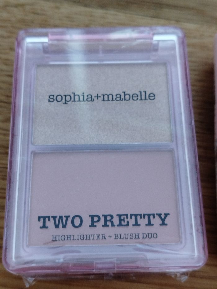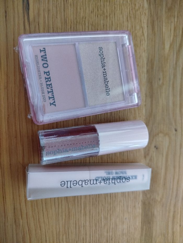 Neufs Two pretty, highlightet + blush duo Format 6g + Brow gel, Format 5,8 ml + Tinted lip oil, teinte beach please contenance 3,7g Lot indissociable