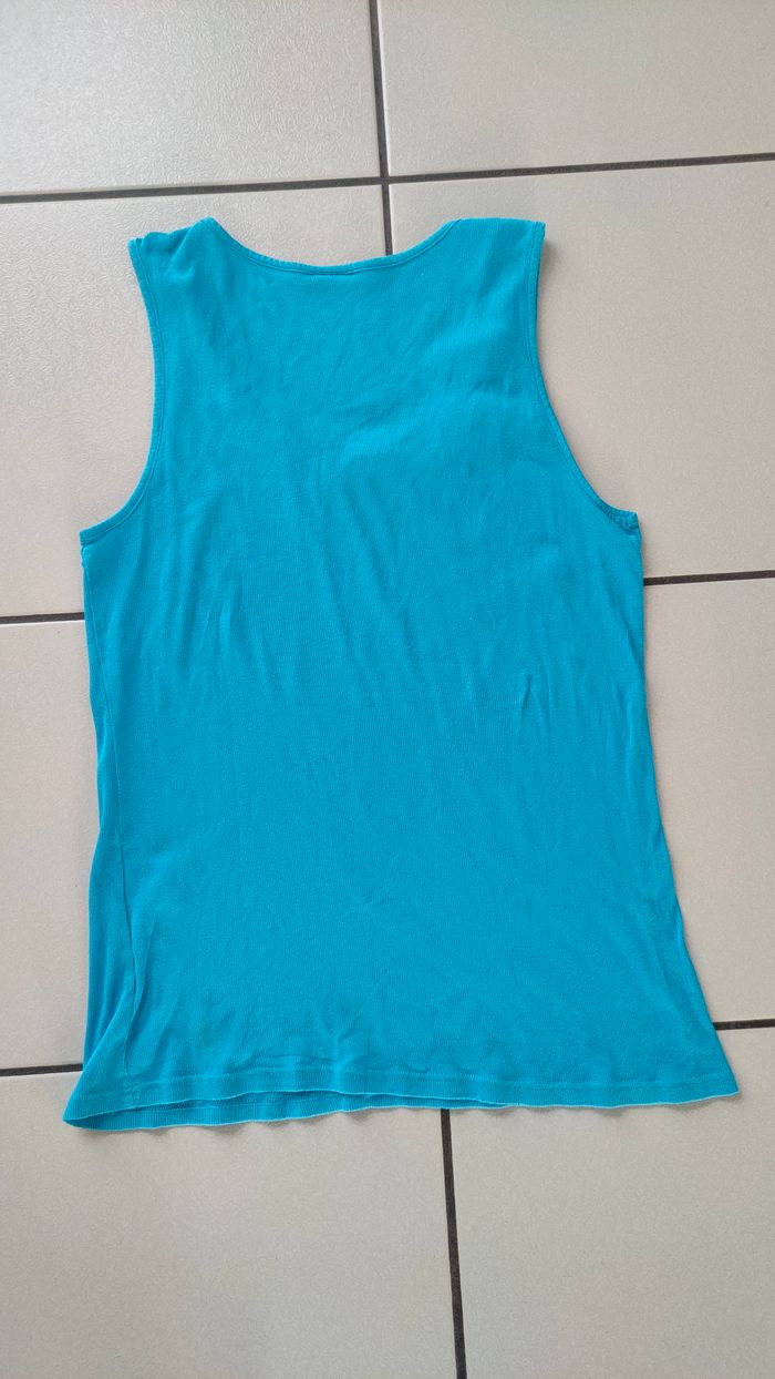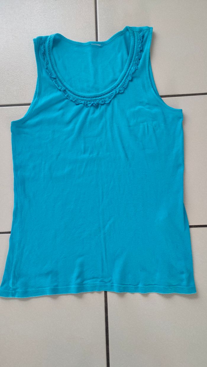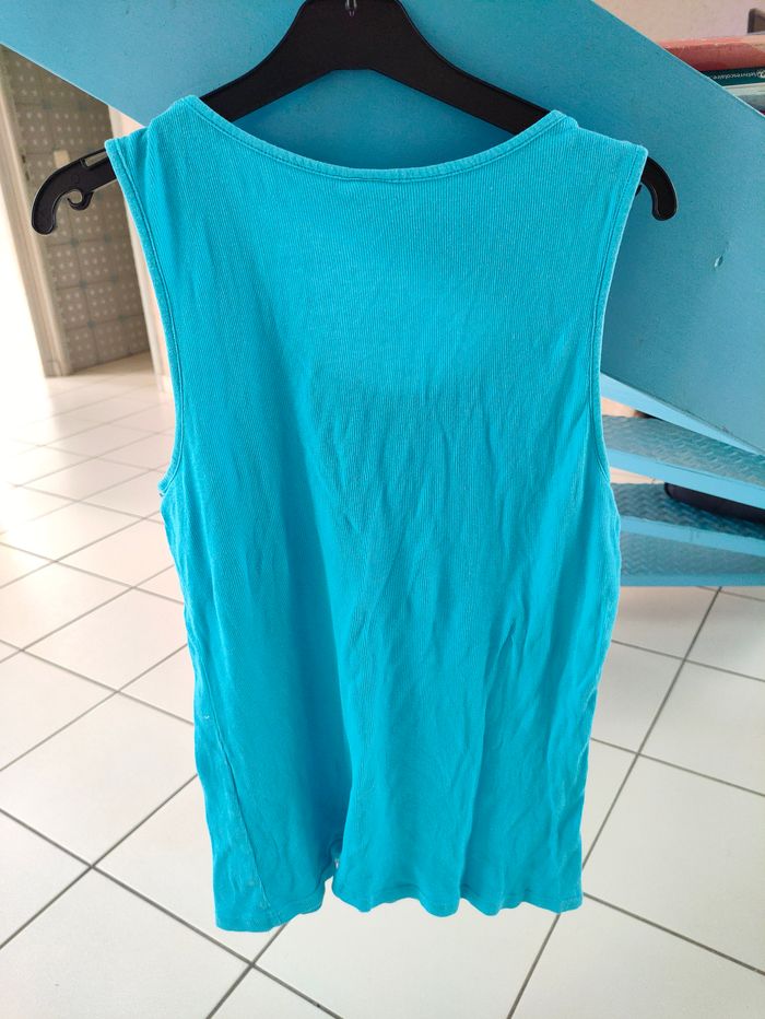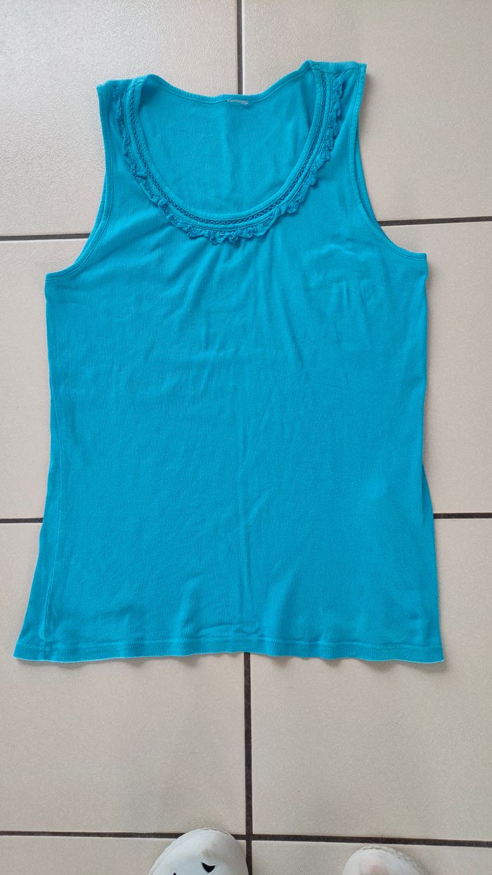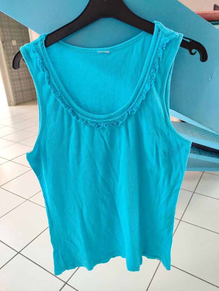 débardeur bleu taille 44 col volanté étiquette intérieur coupée - photo numéro 1
