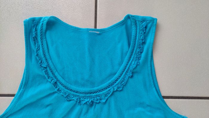 débardeur bleu taille 44 col volanté étiquette intérieur coupée - photo numéro 7