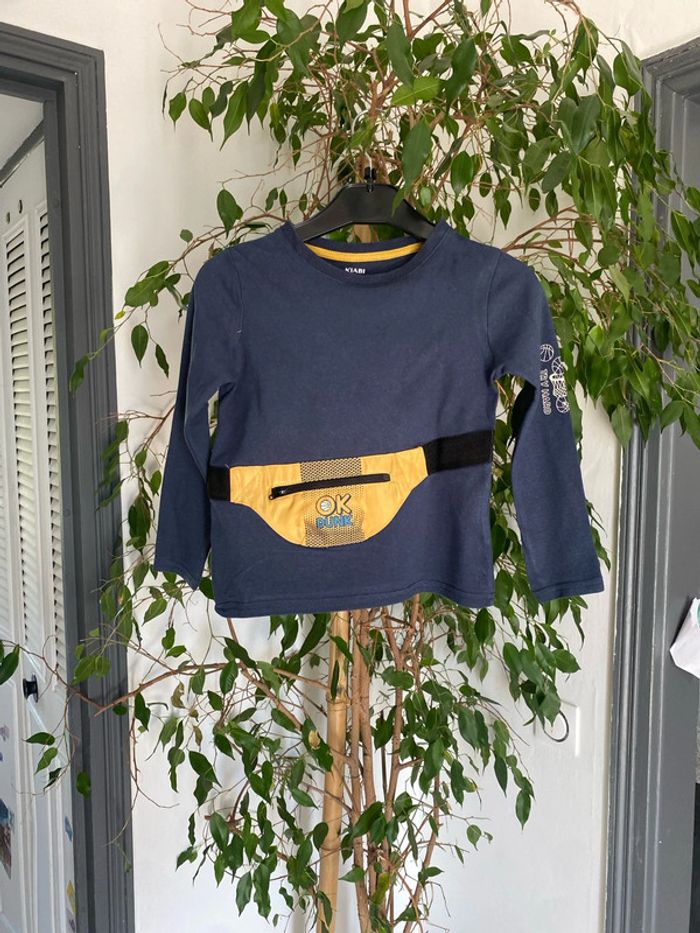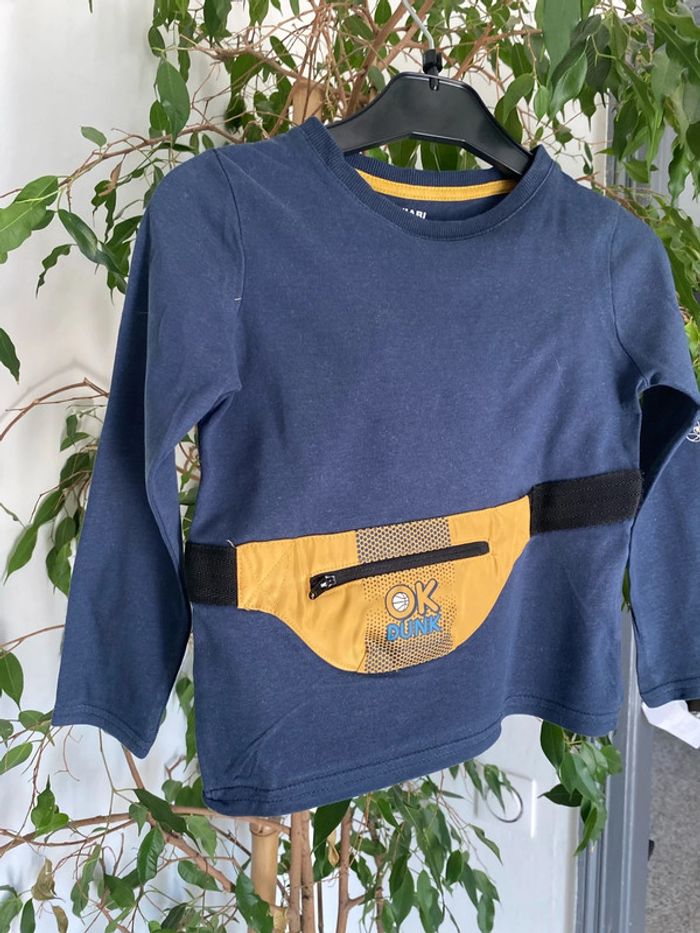 Teeshirt manche longue 4ans très bon état avec petit sac bandana sur le teeshirt possibilité de l’ouvrir comme une petite poche.