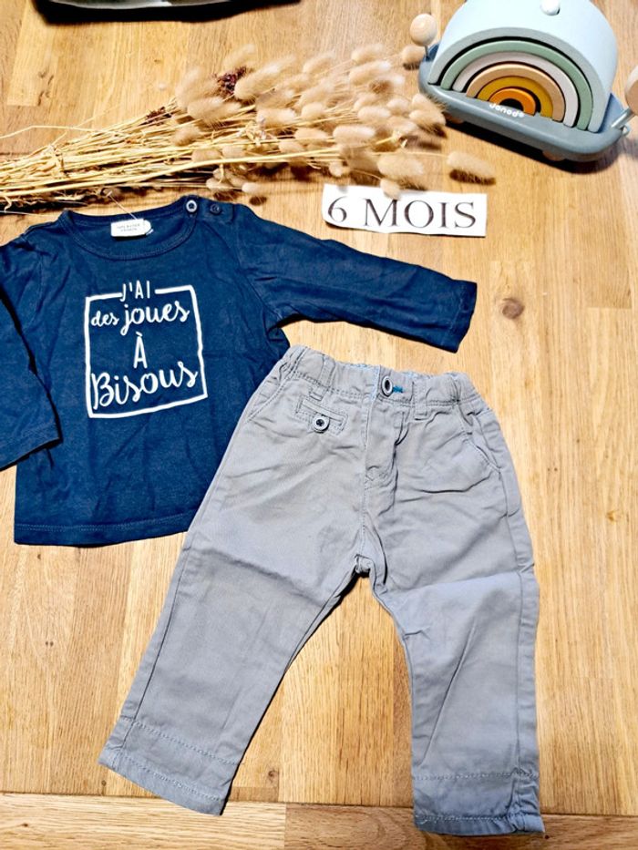 Ensemble 6 mois petit garçon, pantalon et t-shirt manches longues