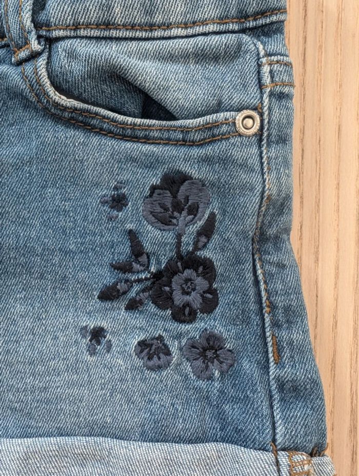 Short en jean brodé. Marque Vertbaudet Taille 5ans/ 110cm. Déjà porté, très bon état. #tennyteb5ans